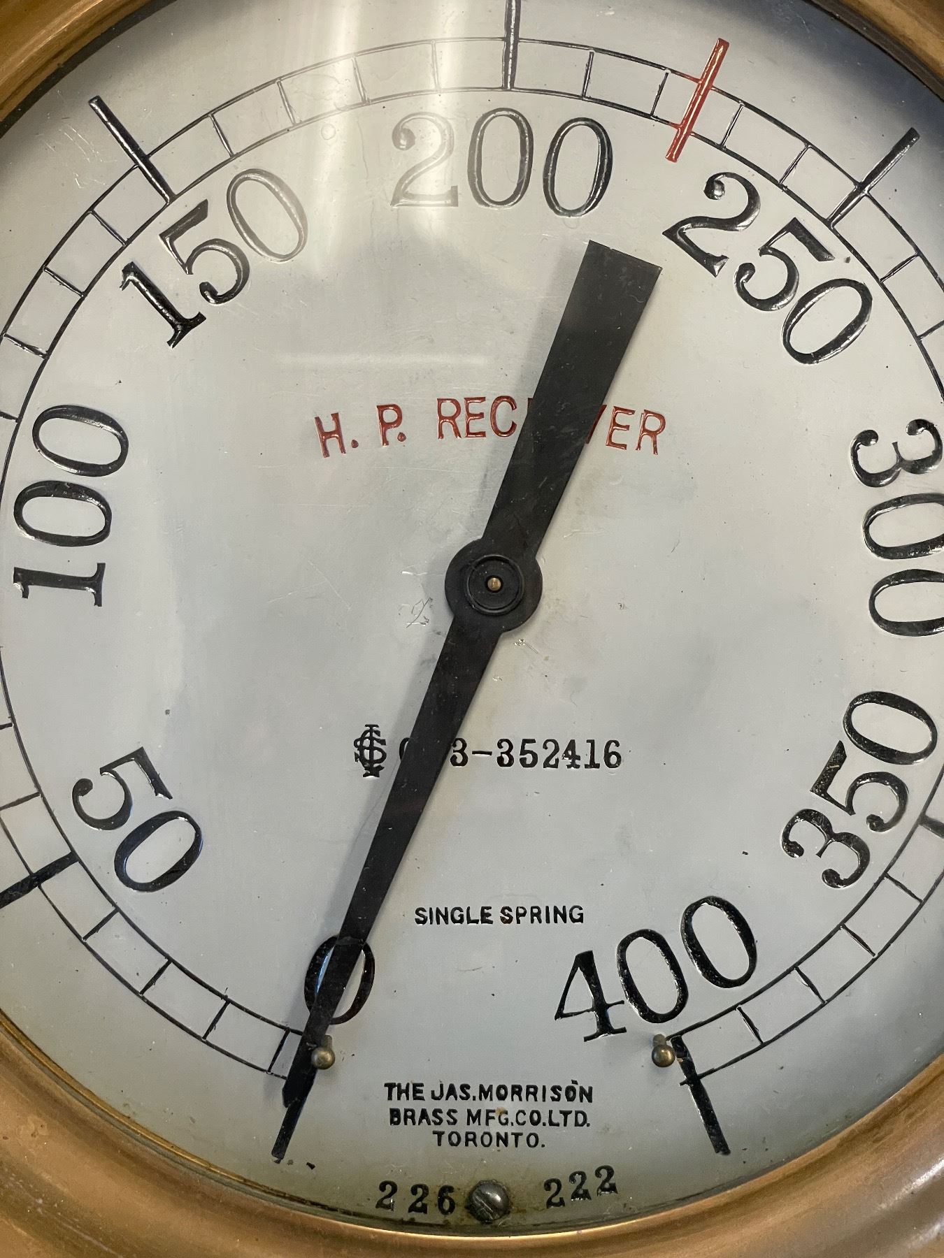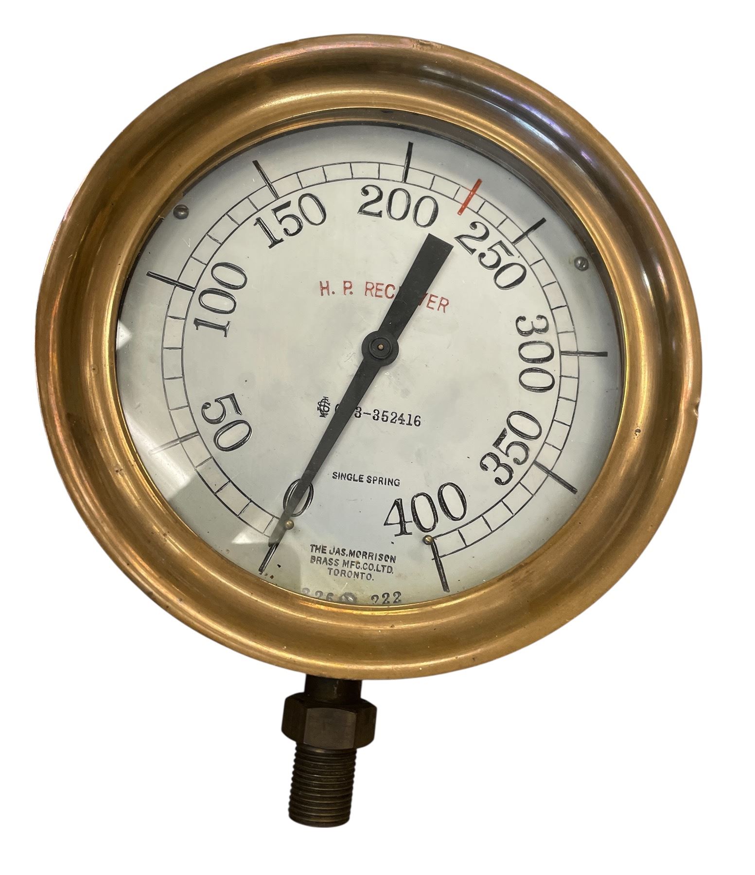 Vintage The Jas Morrison Brass MFG. H.P. Receiver Pressure Gauge