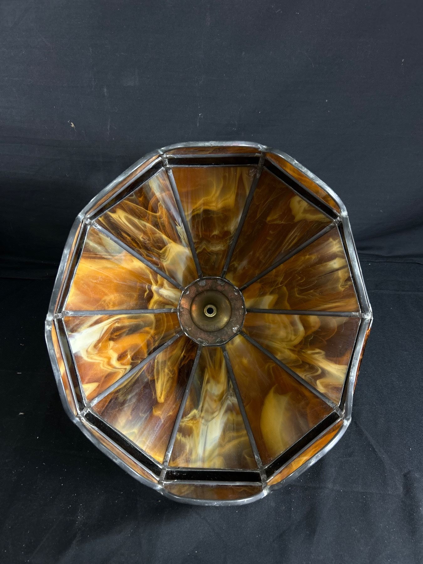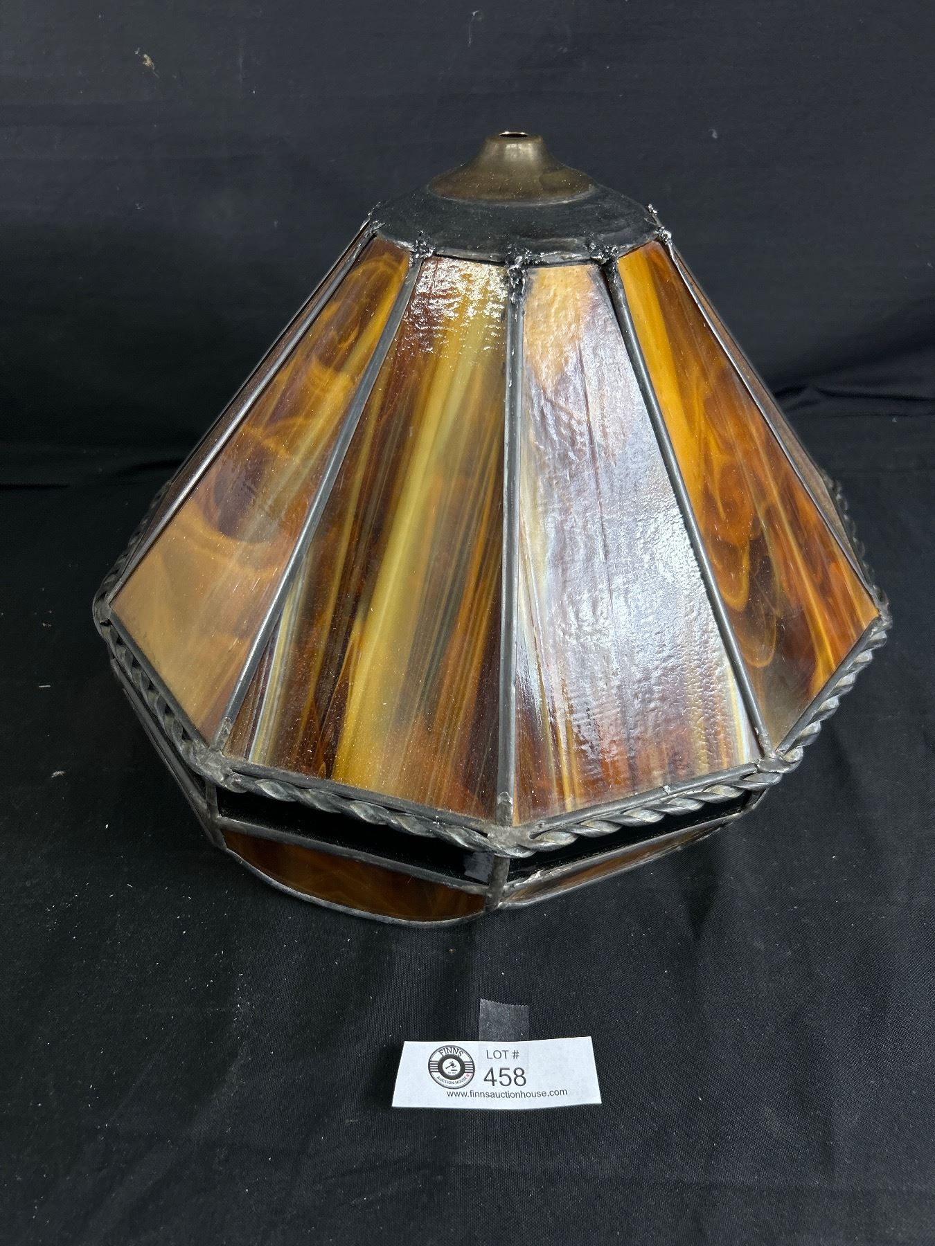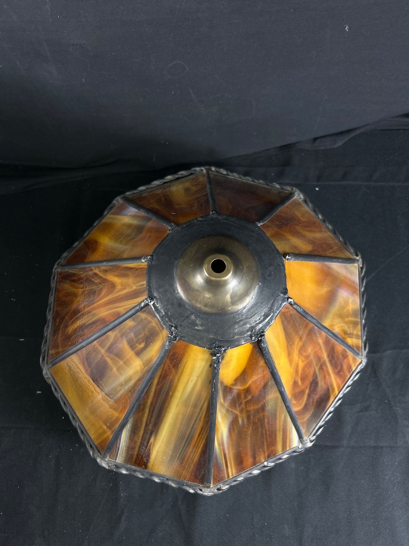 Vintage Tiffany Style Panel Glass Lamp Shade. A few smaller panels are cracked. 14" Diam. Approx. 11"L