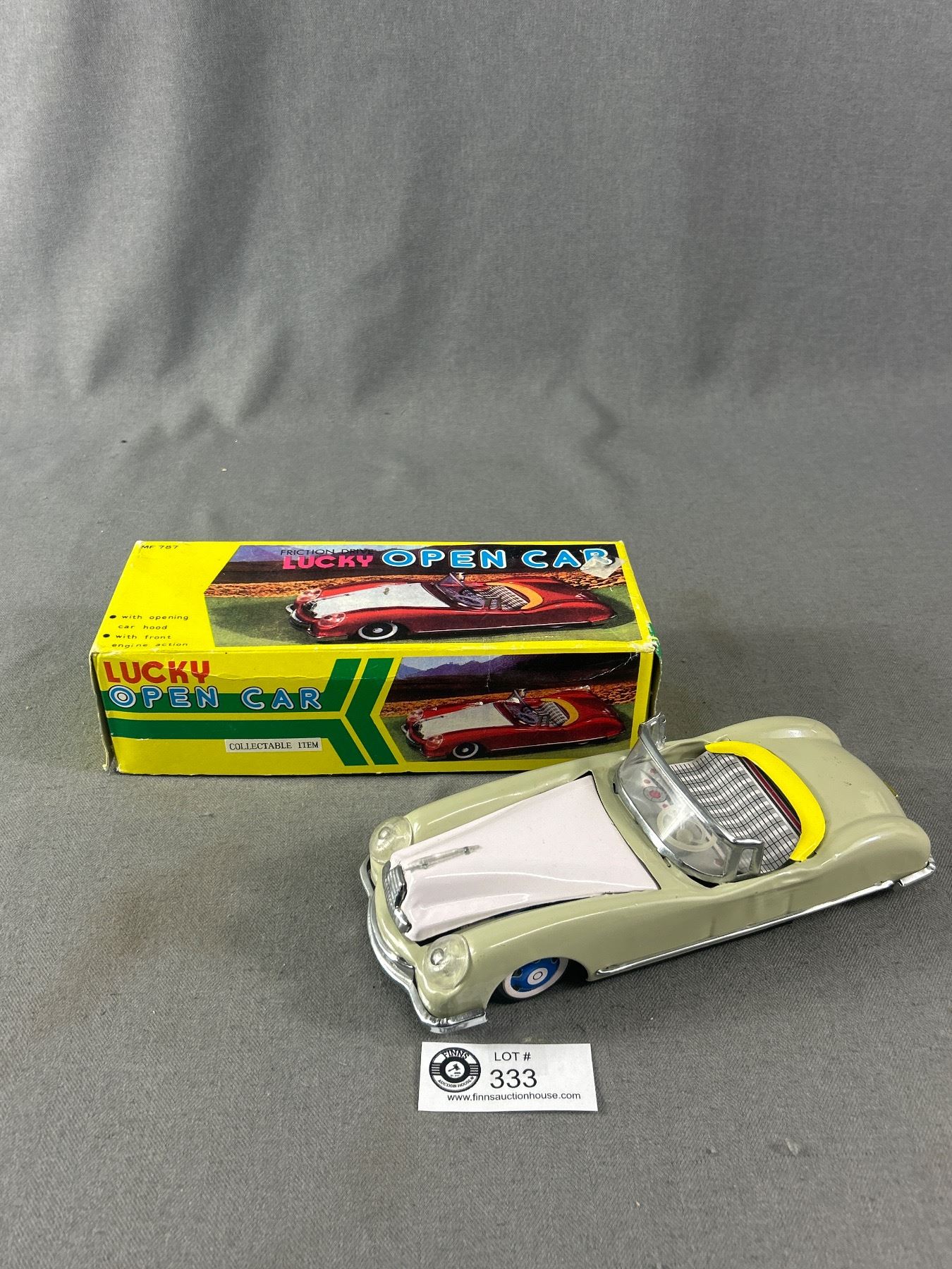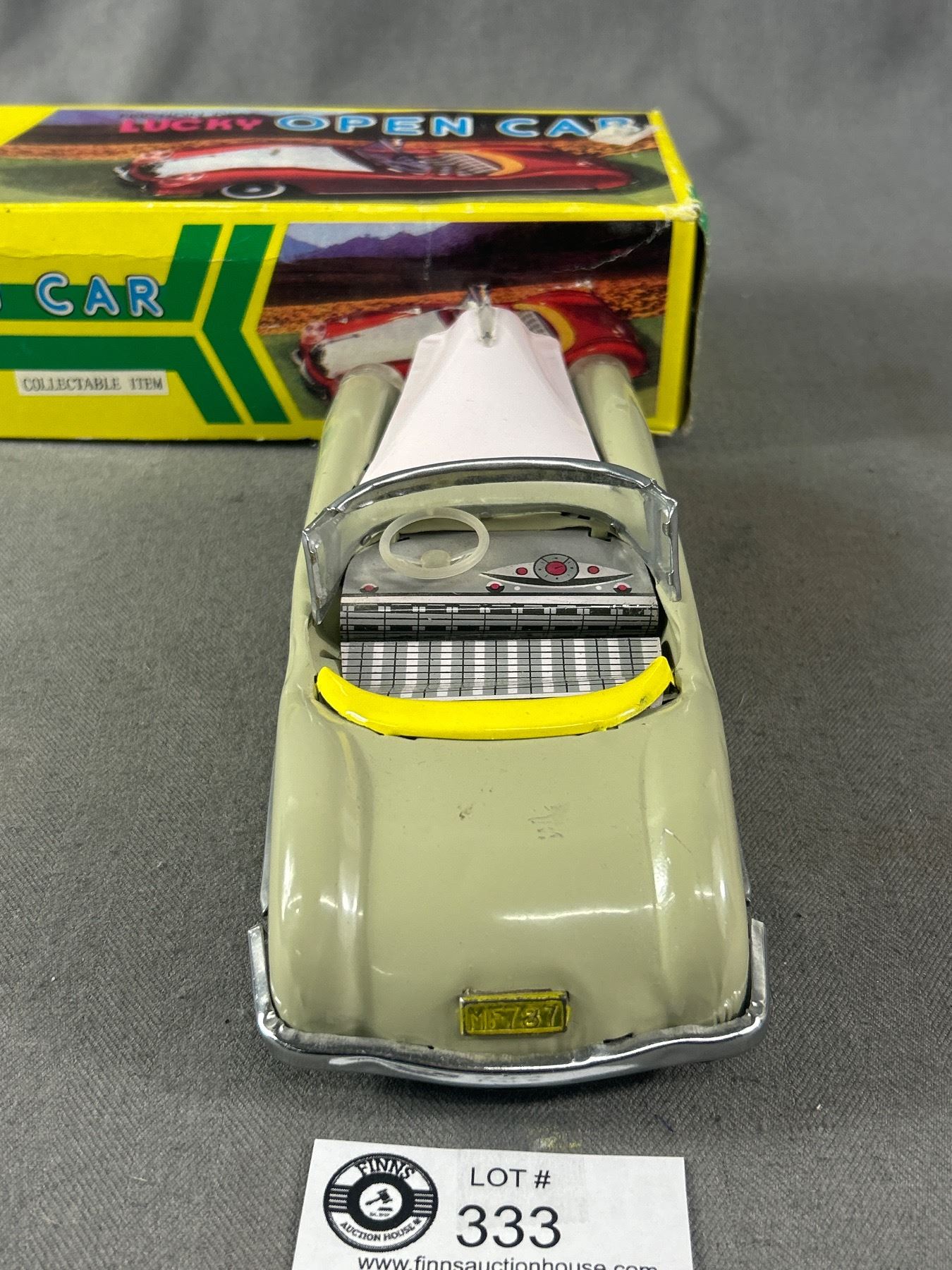 Vintage Tin "Lucky Open Car" Friction Drive Toy. Approx. 9"L
