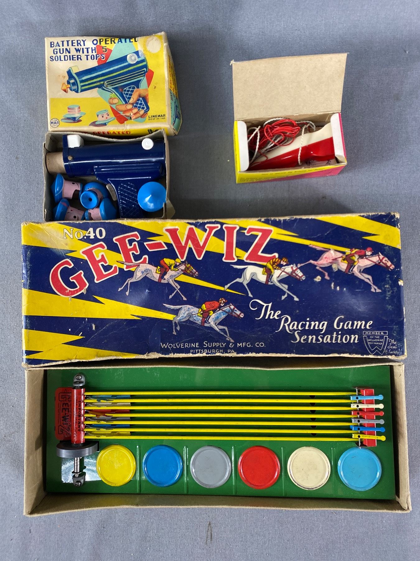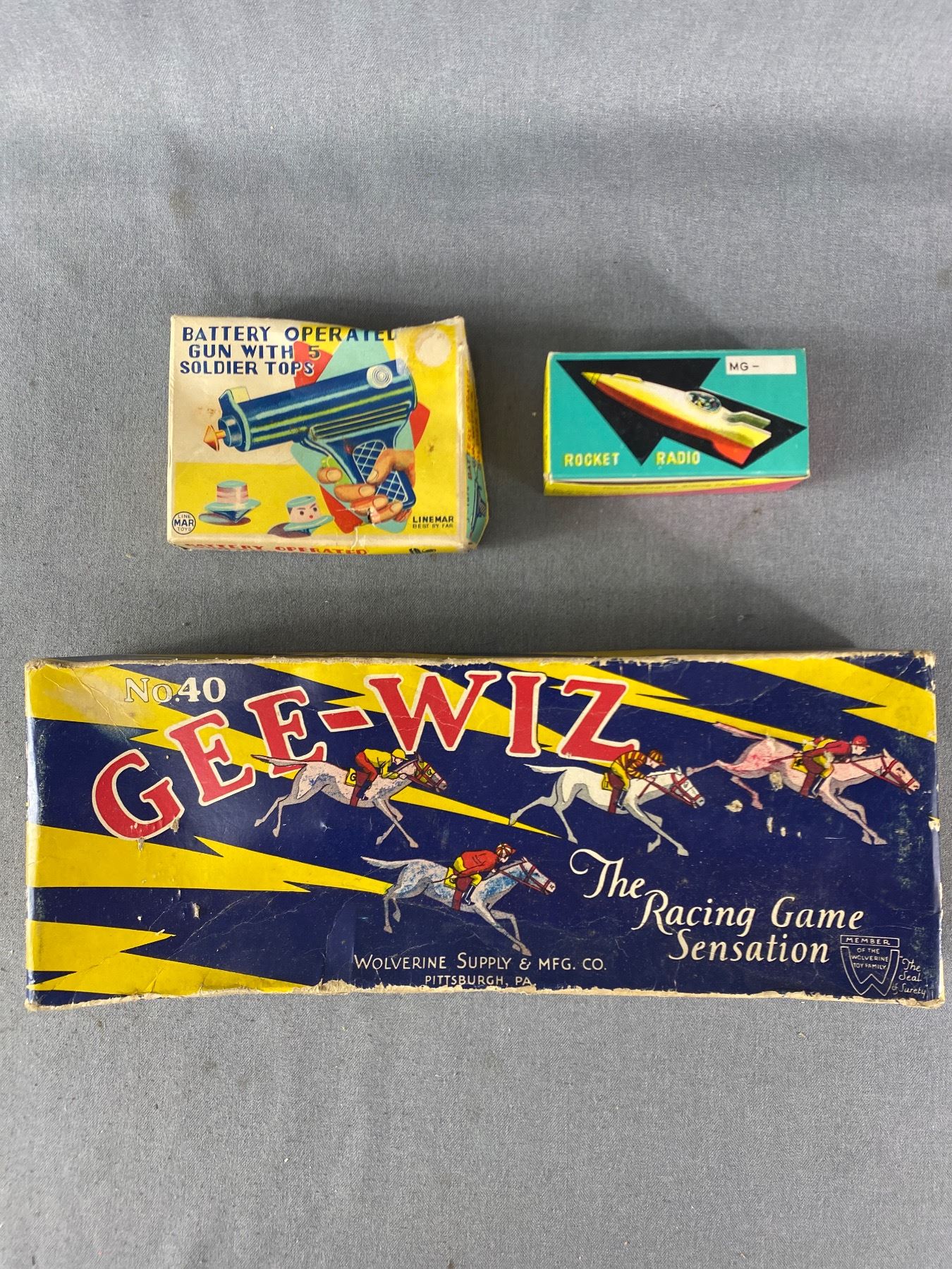 Vintage Toys - Rocket Radio In Original Box (Japan), Mar Toys Japan Batt.Op. Toy Gun & Tin Gee-Wiz Racing Game
