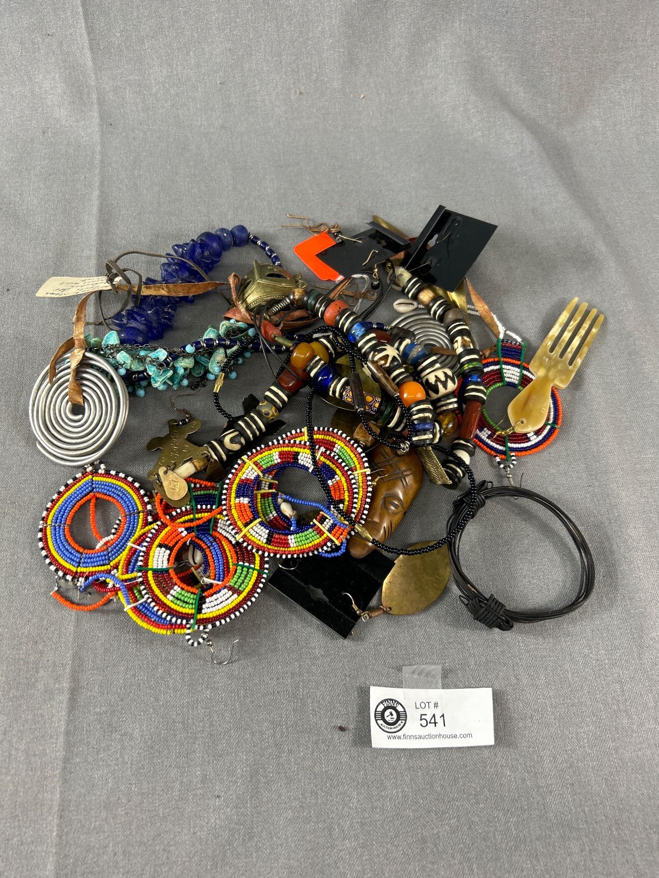 Vintage Tribal Jewelry Lot - Metal, Beaded, Stone & More
