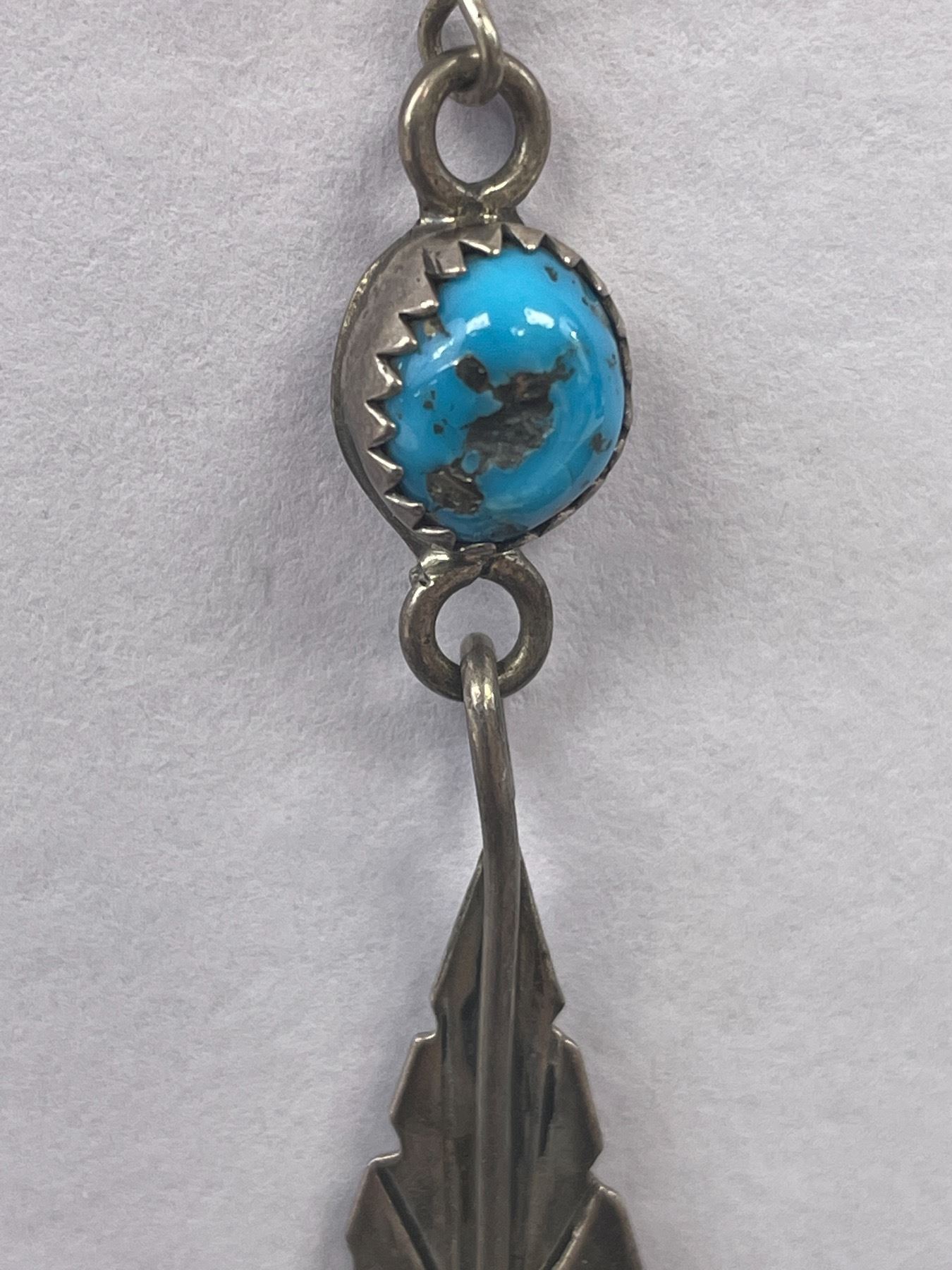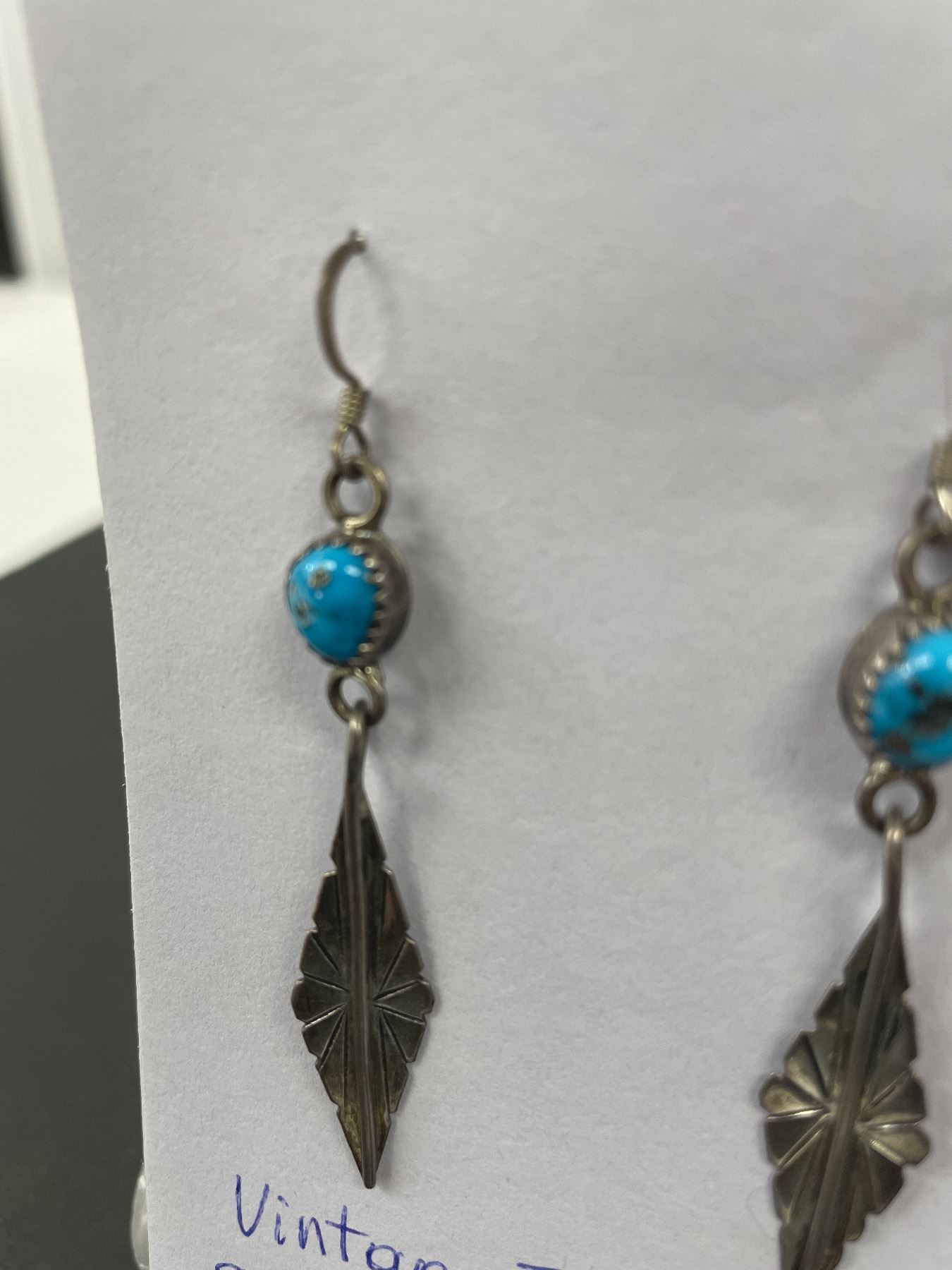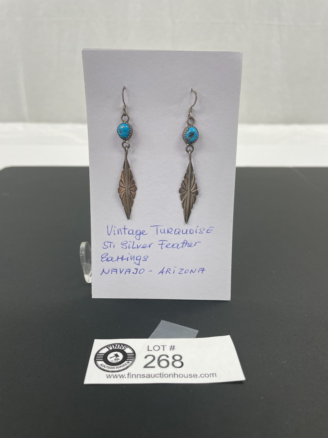 Vintage Turquoise Sterling Silver Feather Earrings Navajo Arizona