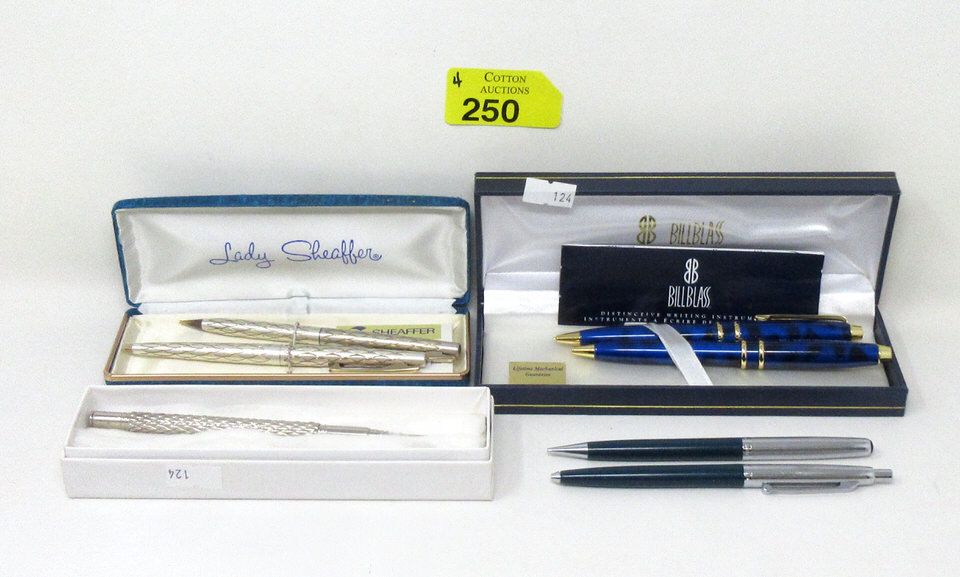Lady Sheaffer, Bill Blass (with personal inscription), and North-Rite Pen and Pencil sets.
