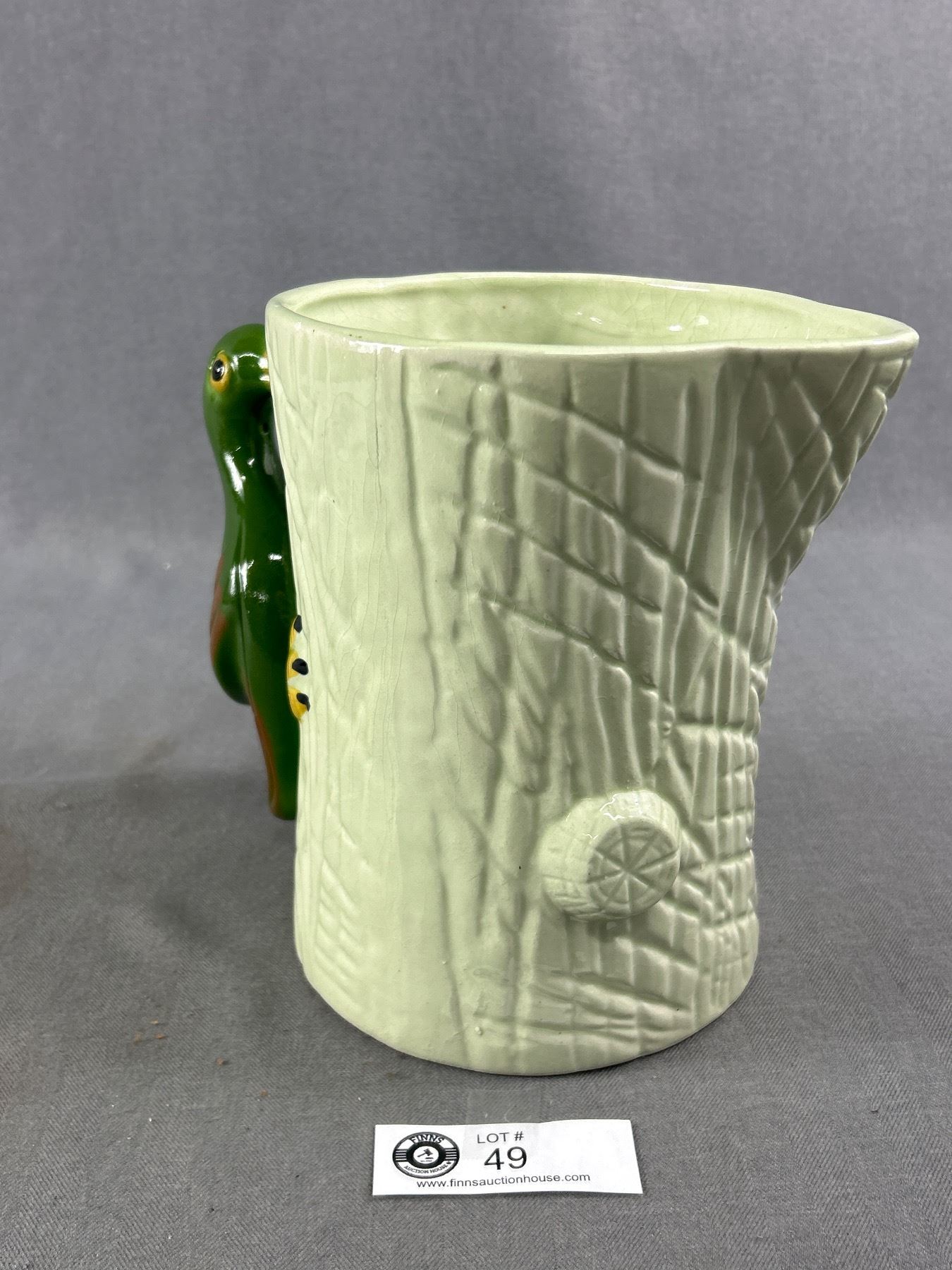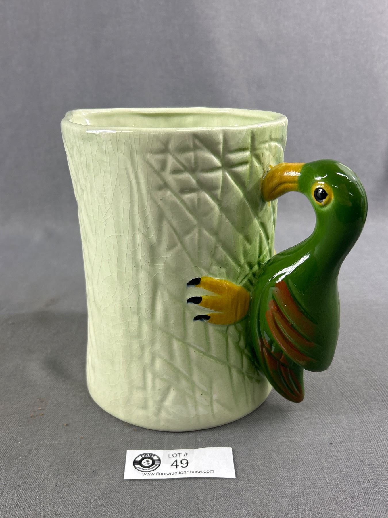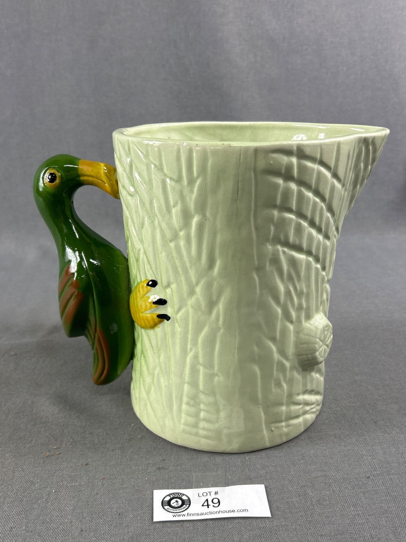Vintage Unmarked Pottery Ceramic Pitcher w/ Parrot Handle. Approx. 8" H