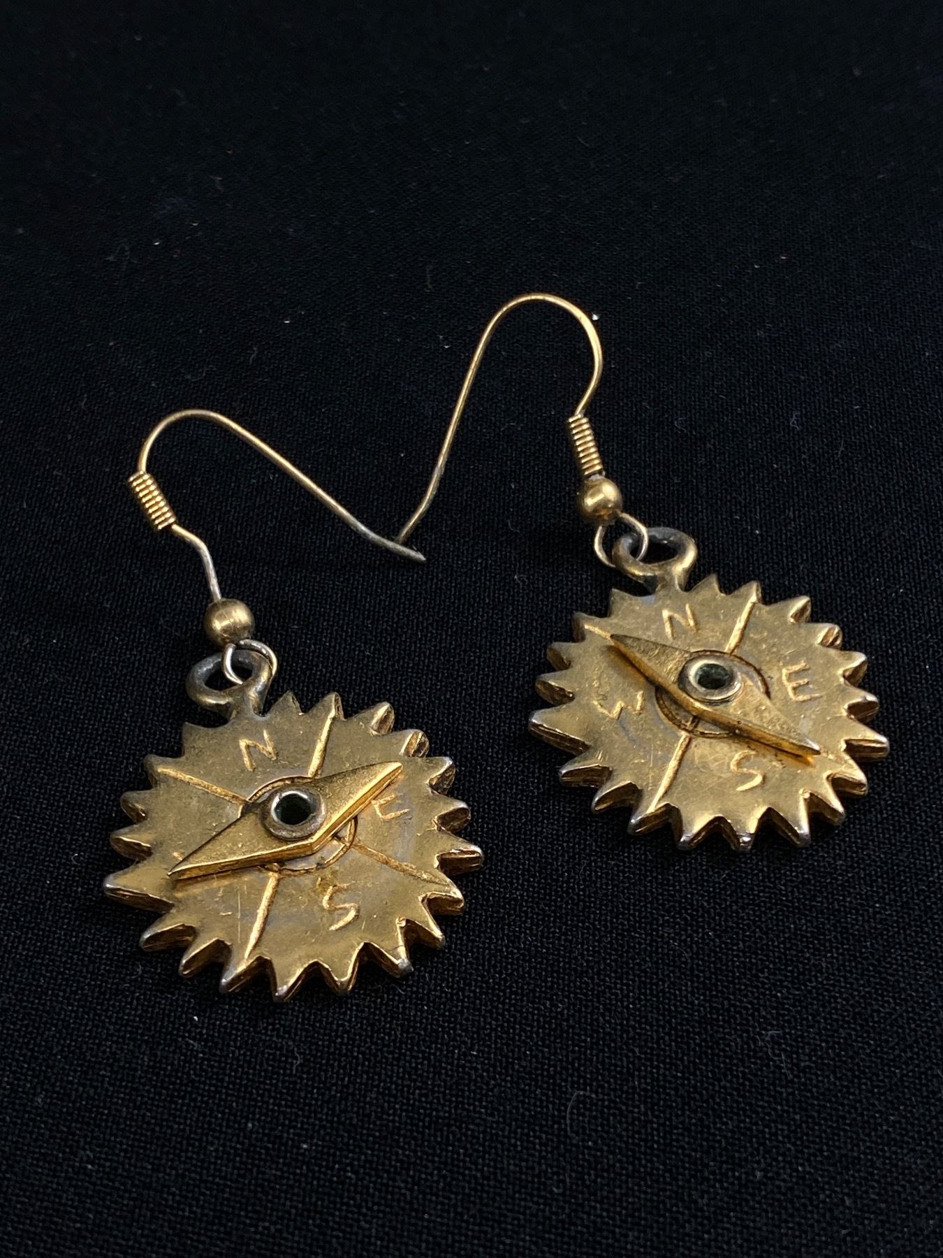 Vintage Unusual Compass Dangle Earrings (Rotating Needle)