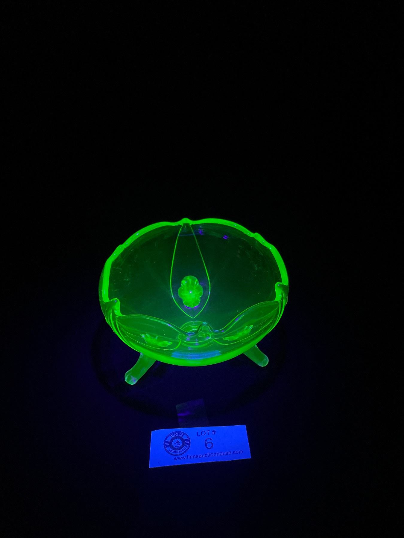 Vintage Uranium Glass Dish. Approx. 5" Diameter 3" High