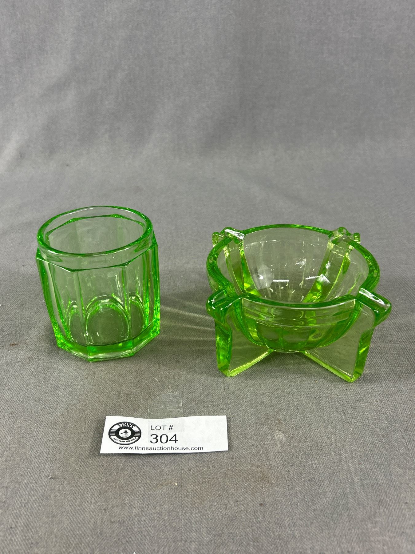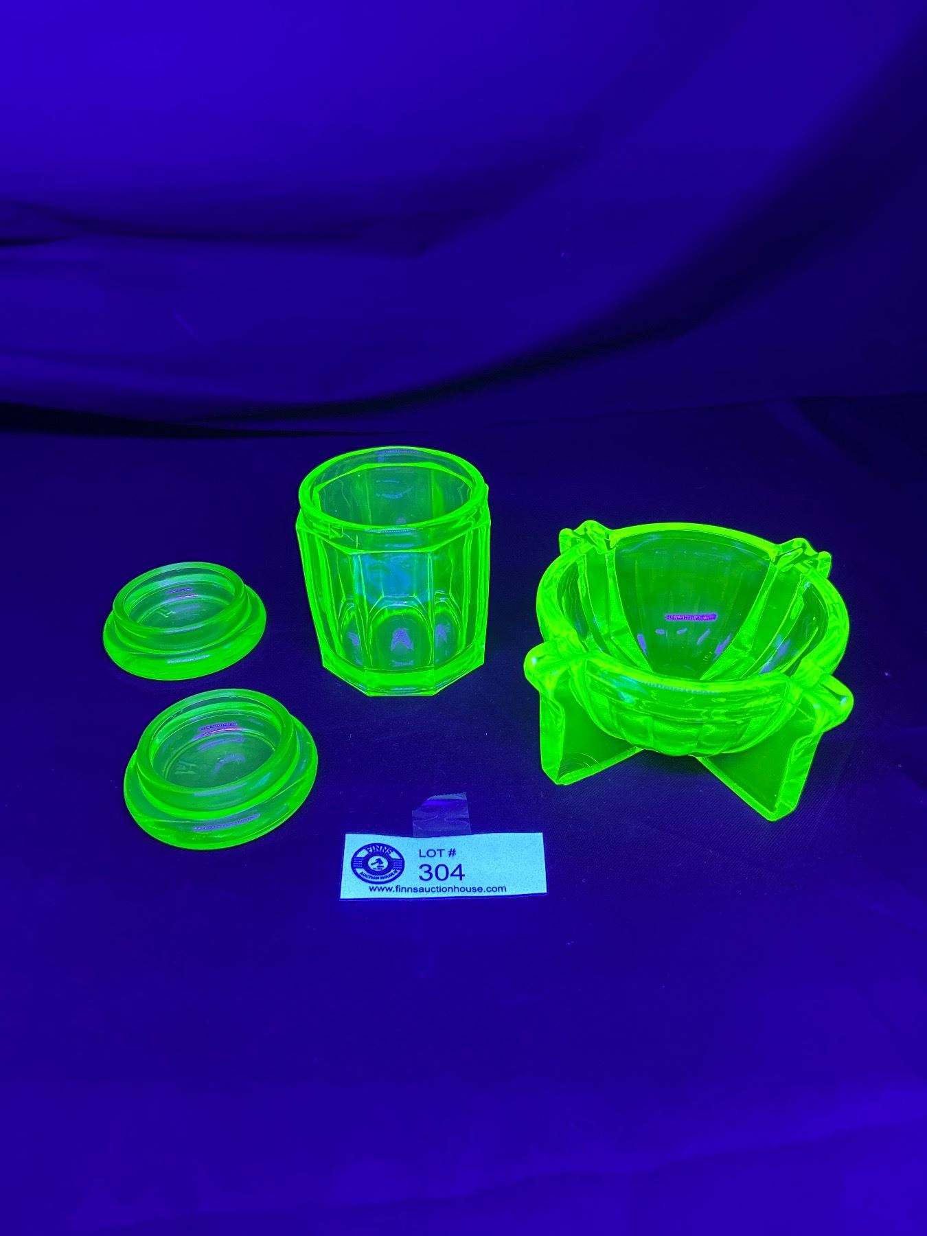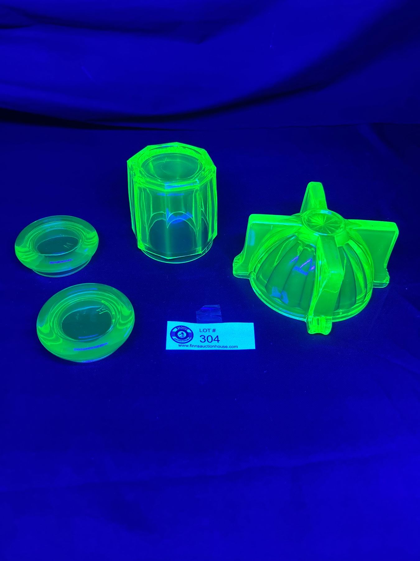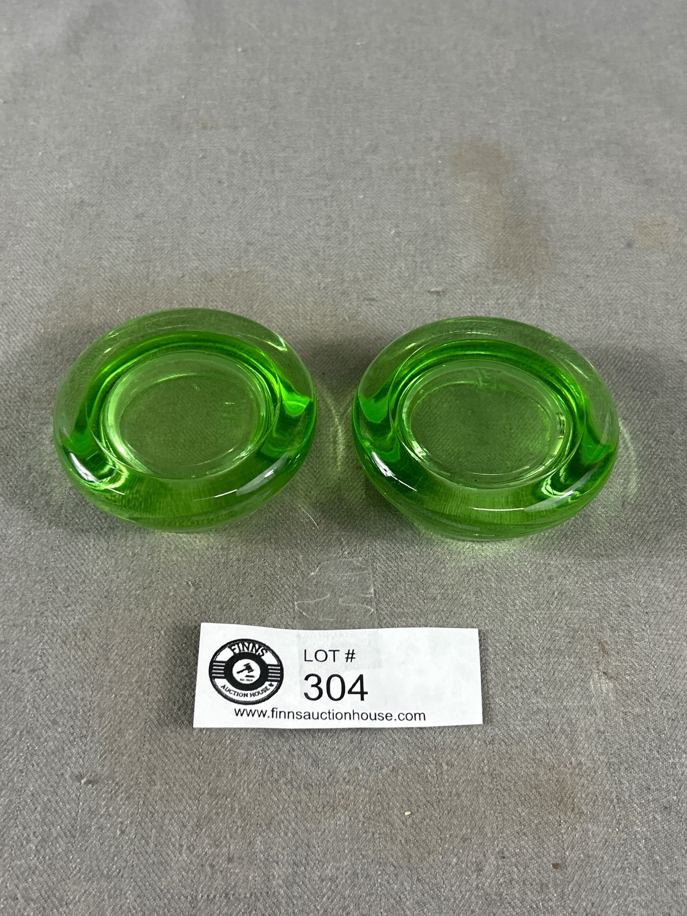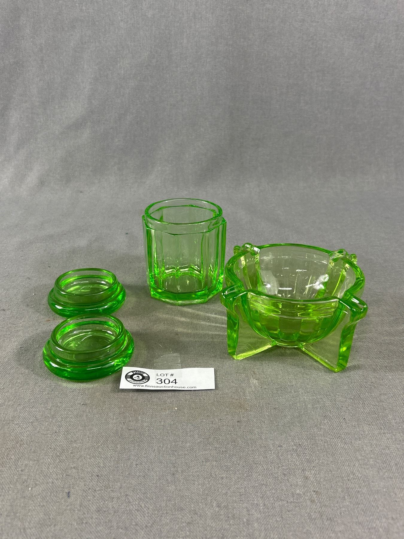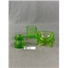 Vintage Uranium Glass Lot - (2) 2.75" Floor Coasters, 5" Ashtray Bowl & 3"H Jar