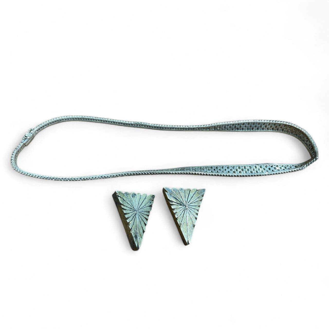 Vintage "V" Sterling Silver Necklace & Pair of Triangle Earrings - Total weight: 34 grams