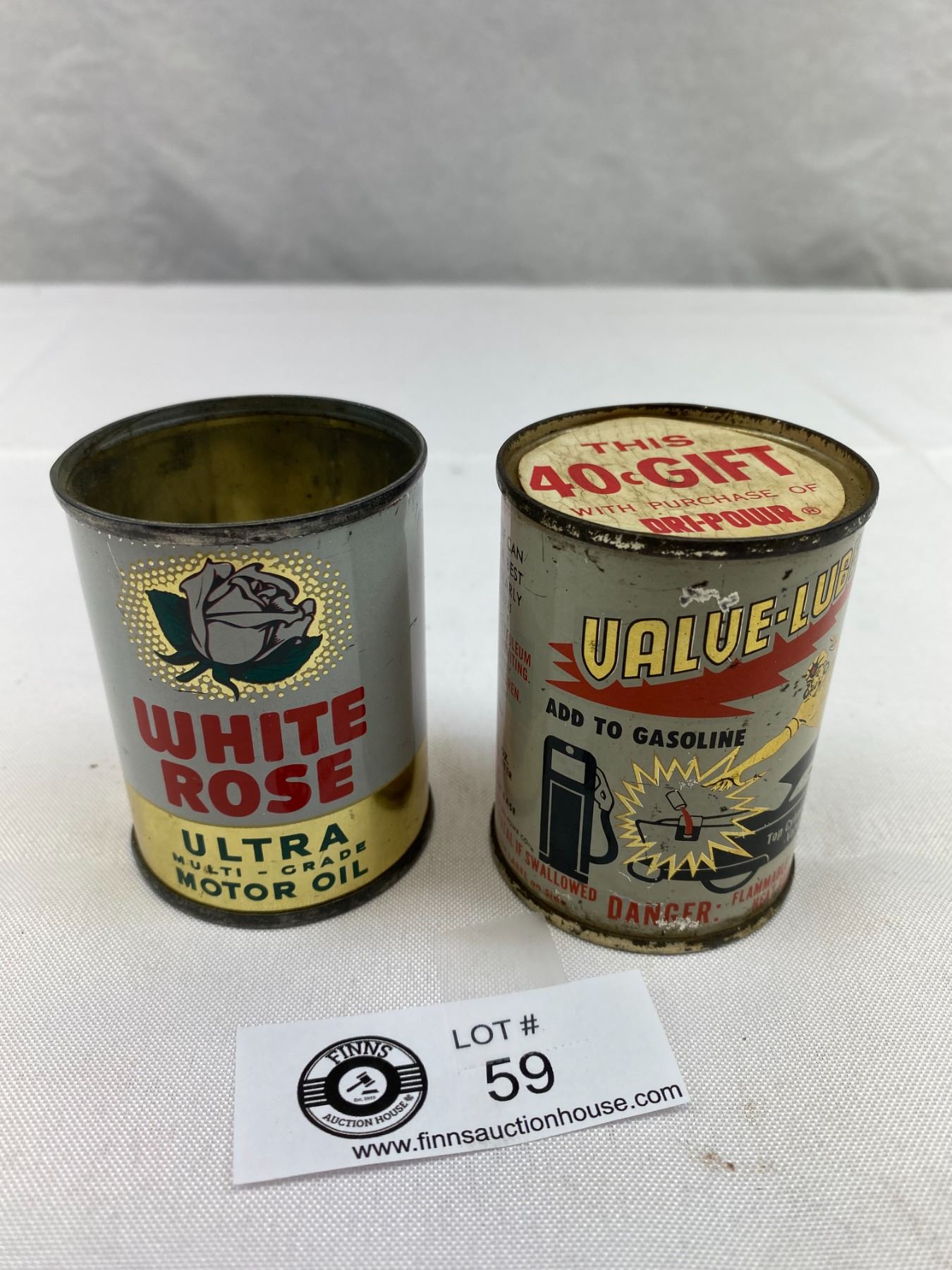 Vintage Valve-Lube Lubricant, Great Graphics And White Rose Motor Oil Tin