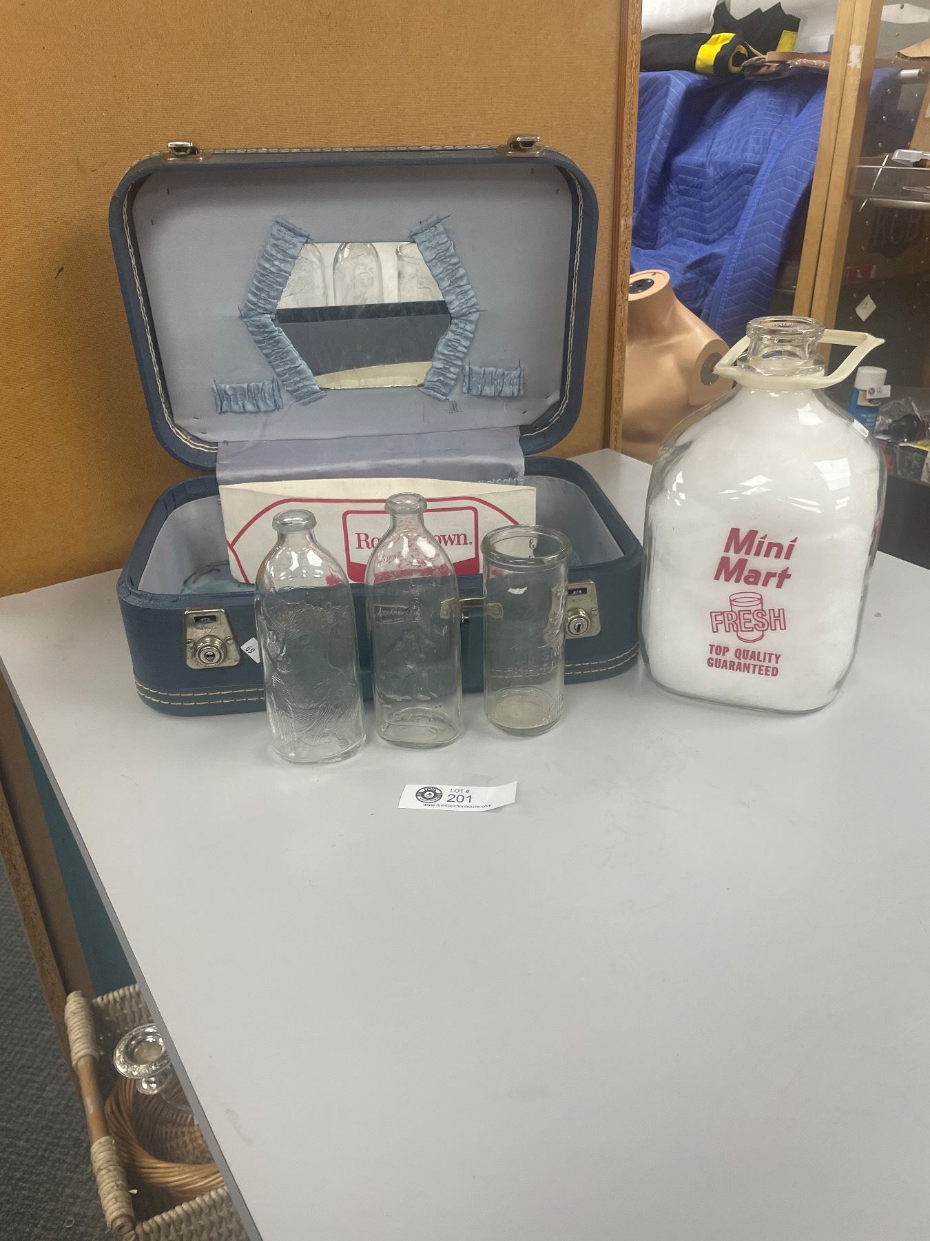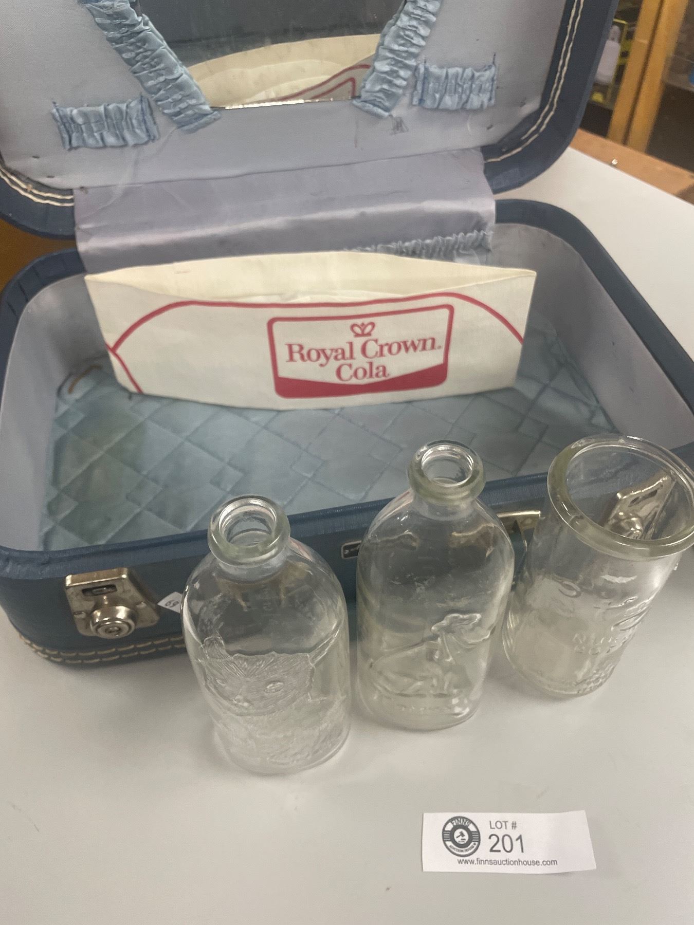 Vintage Vanity Case with Collectible Bottles, and a Vintage Soda Jerk Hat.