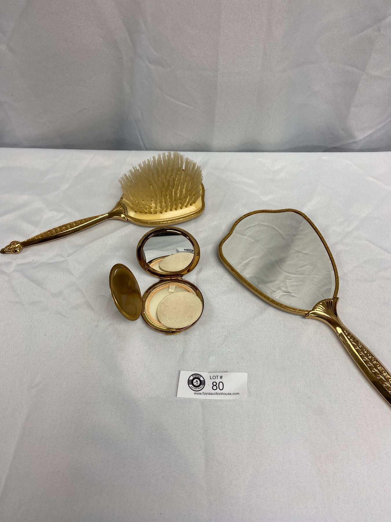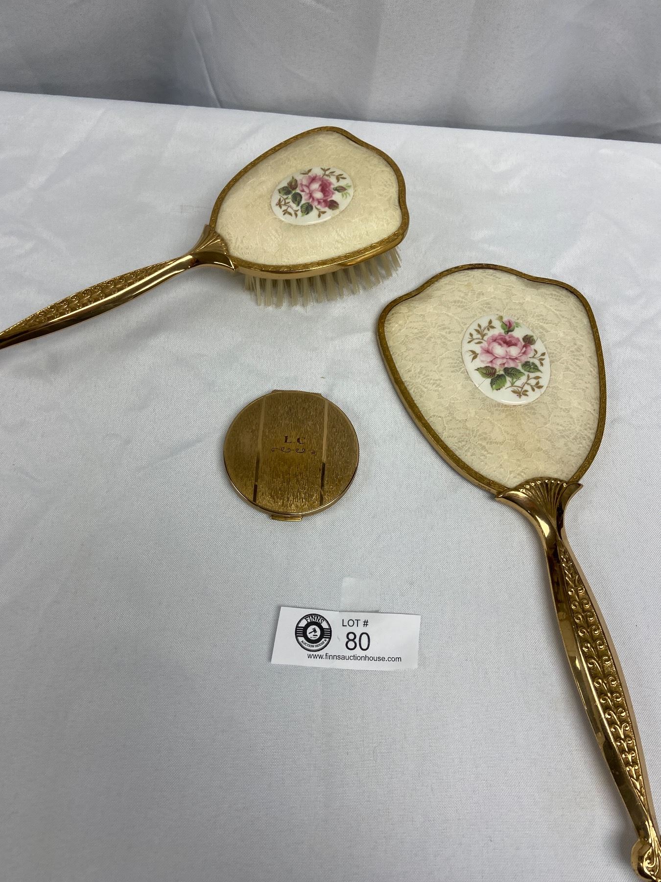 Vintage Vanity Set with Engraved Stratton Mirrored Compact