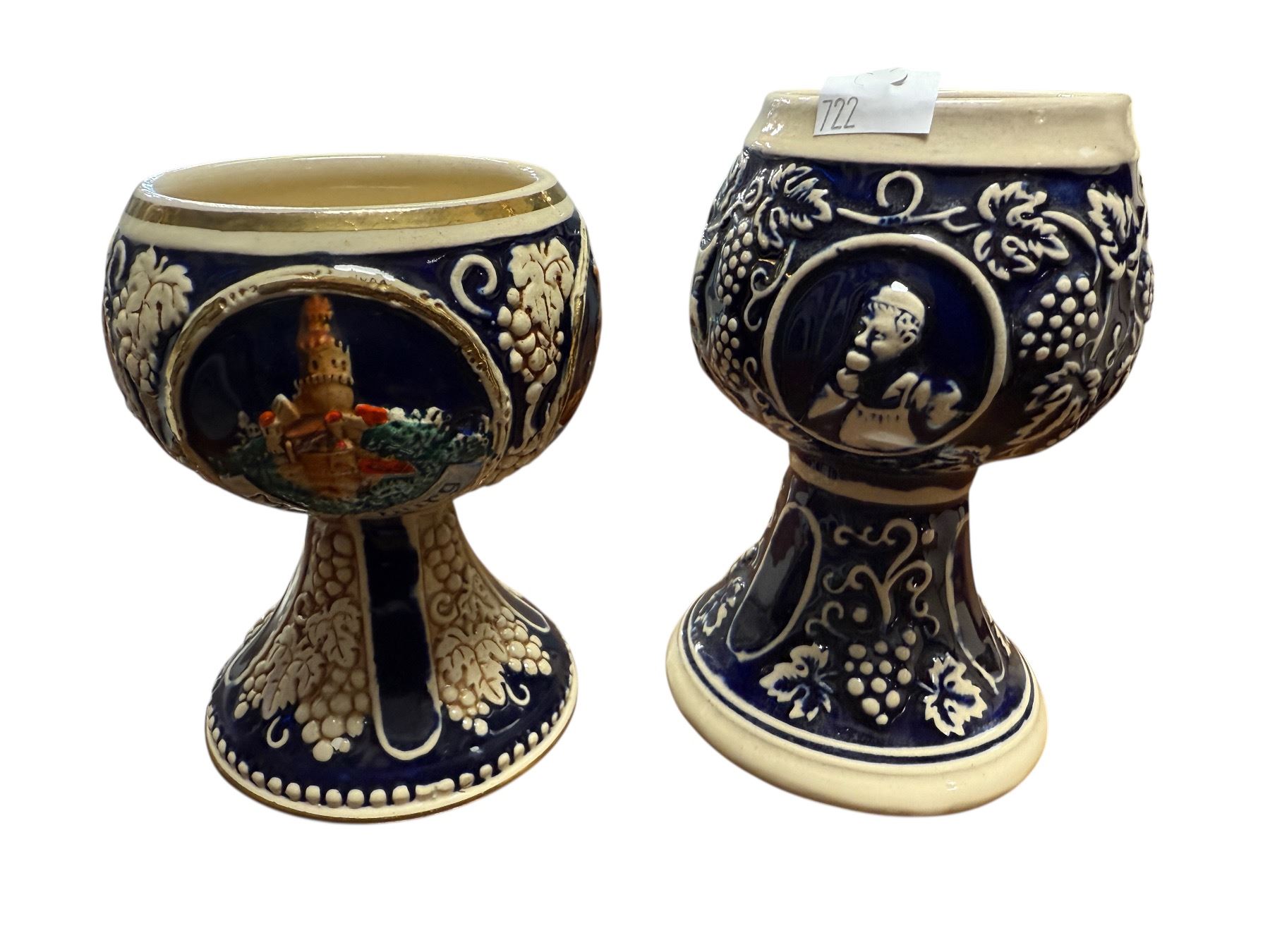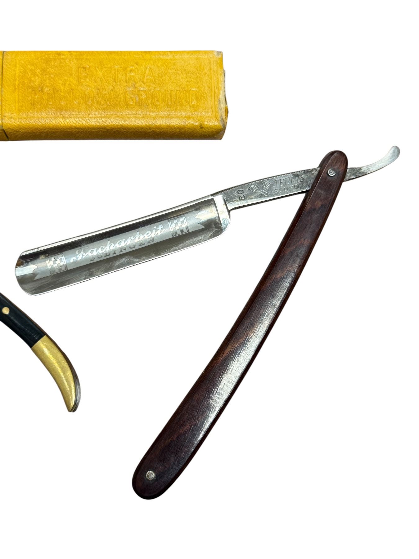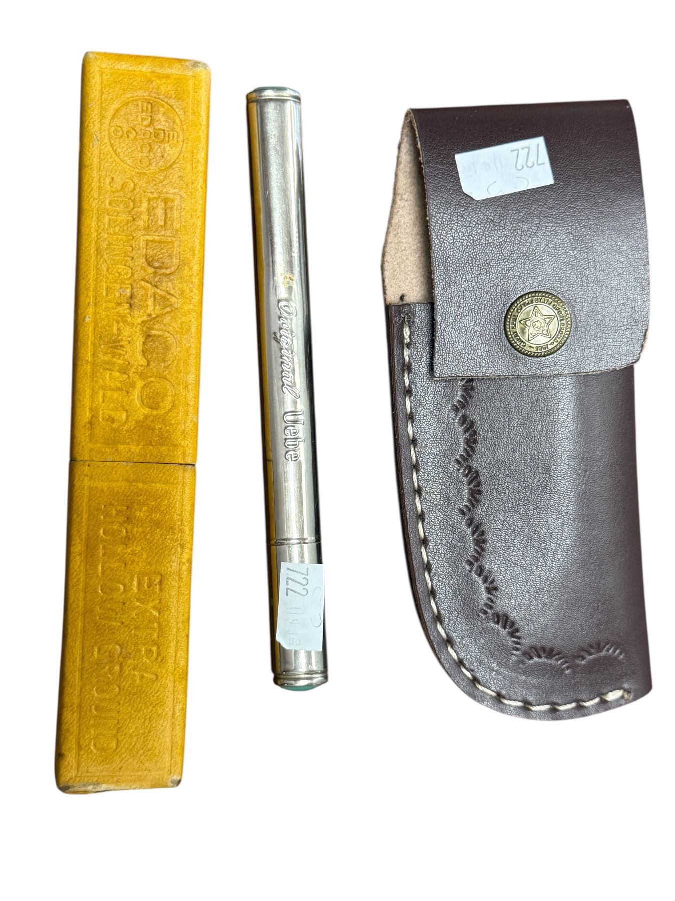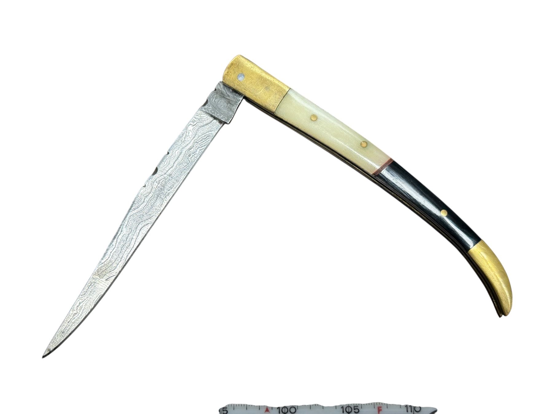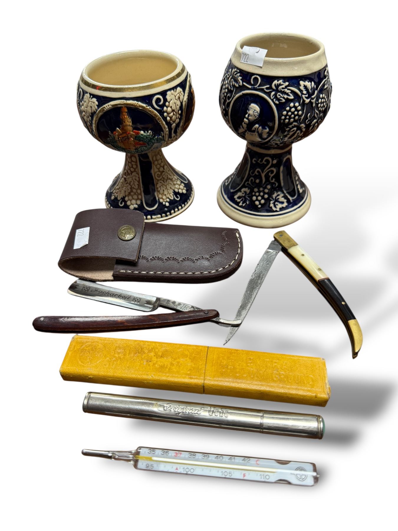 Vintage Variety: Pottery Goblets, Thermometer, Razor, & Damascus Blade Folding Knife
