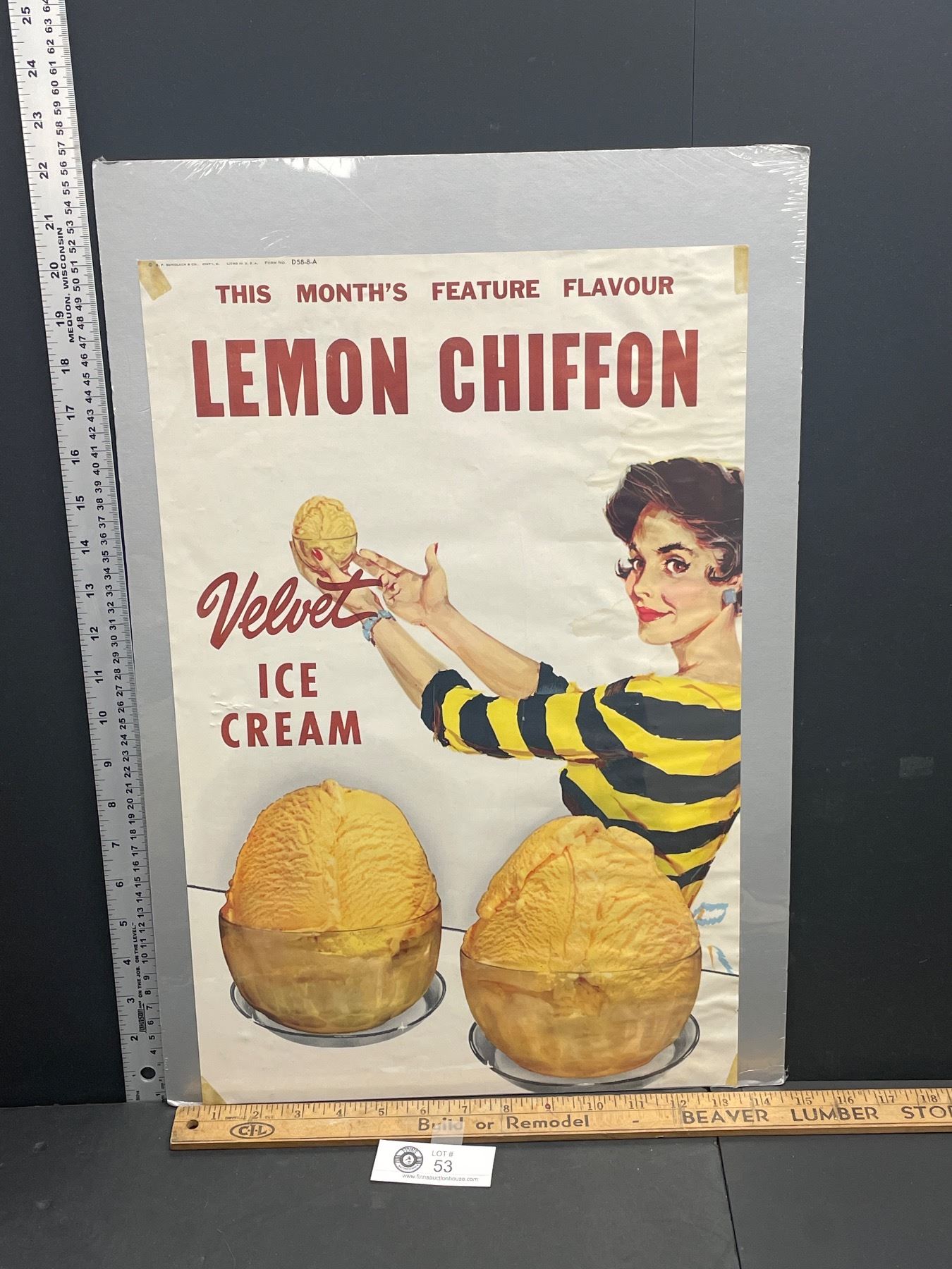 Vintage Velvet Ice Cream Advertising Poster 15 x 22"