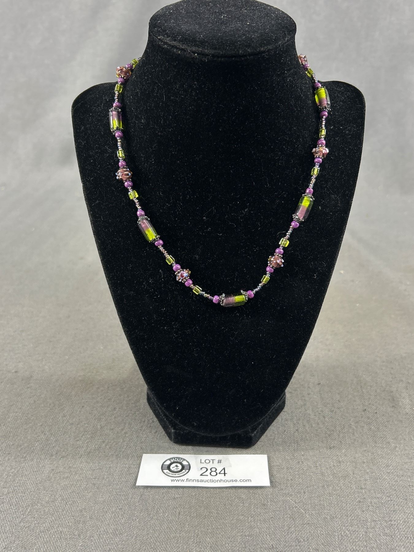 Vintage Venetian Murano Wedding Cake Glass Beads Necklace with Original Clasp