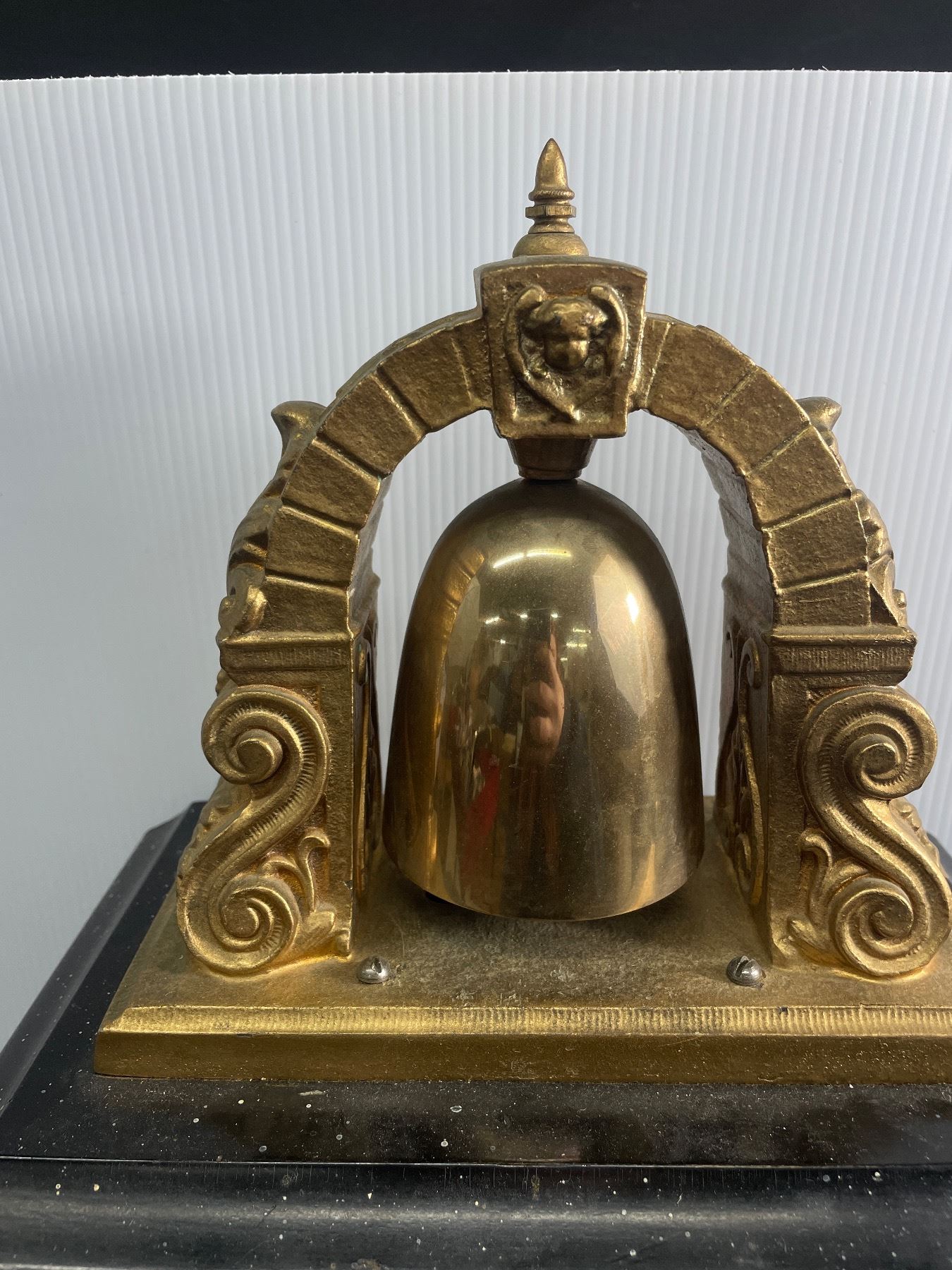 Vintage Very Ornate Wood & Brass Mantel Clock. As Found. Approx. 17 1/2" Tall, Base Approx. 15 1/2" x 6"