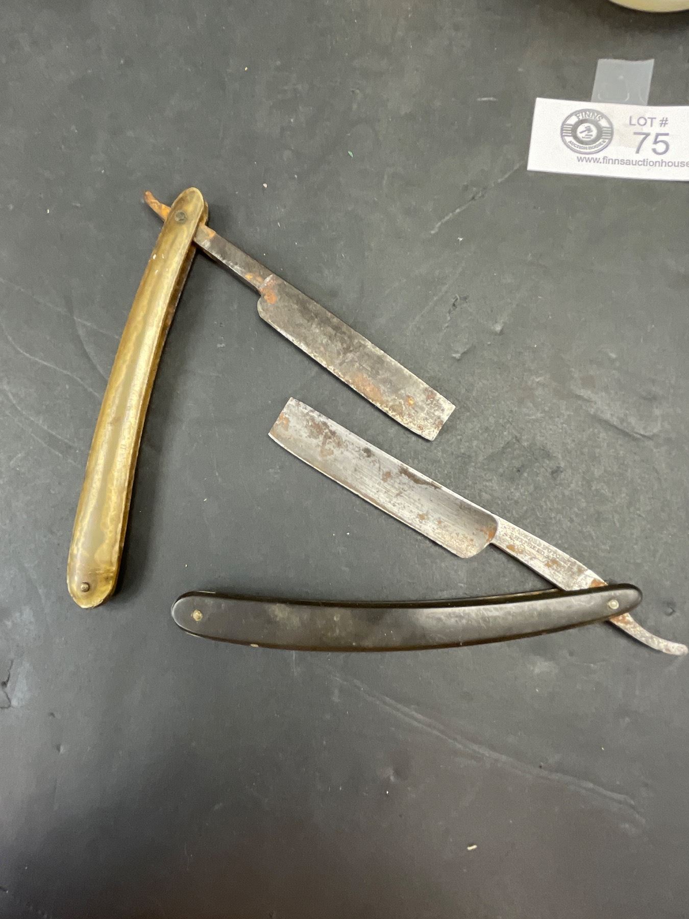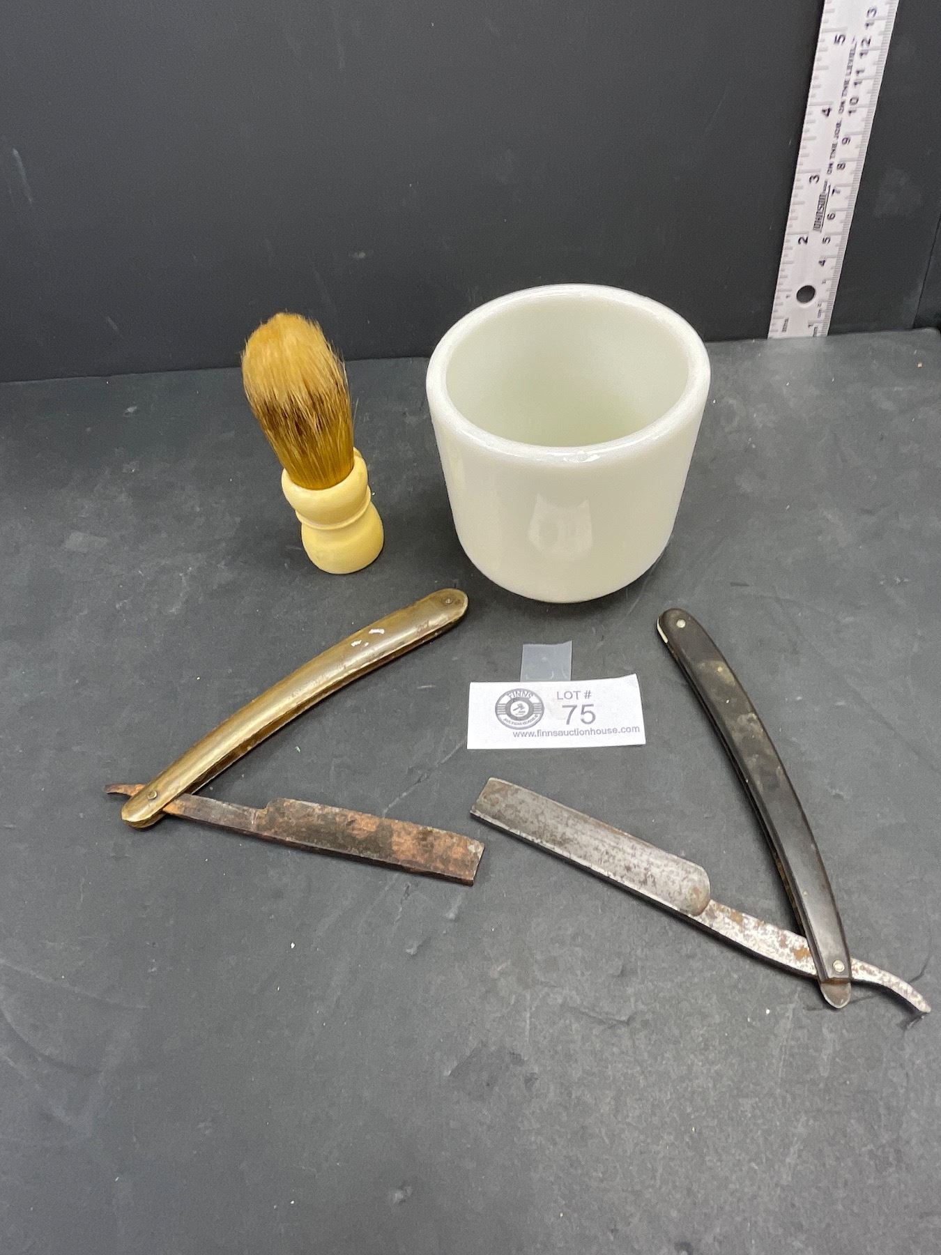 Vintage WW11 Milk Glass Shaving Mug, Brush and Straight Razor