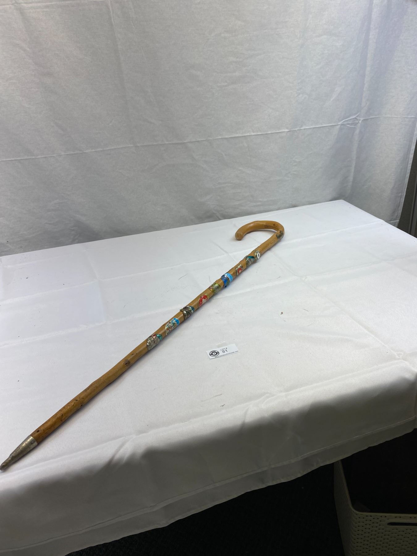 Vintage Walking Stick With Fourteen Emblems/Badges