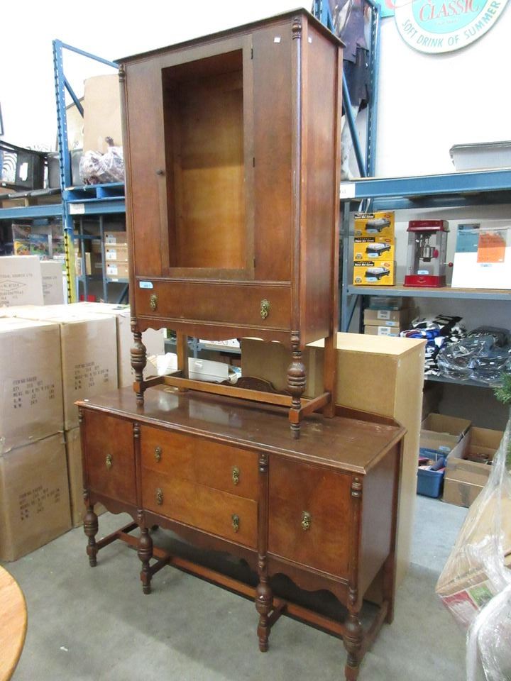 Cupboard needs new glass. Sideboard is 20" x 60" x 36" tall.