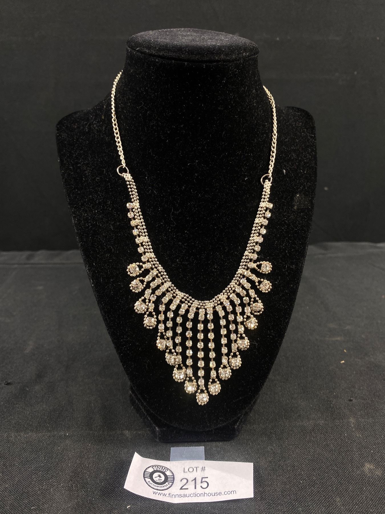 Vintage White Rhinestone Necklace16" L No Missing Stones