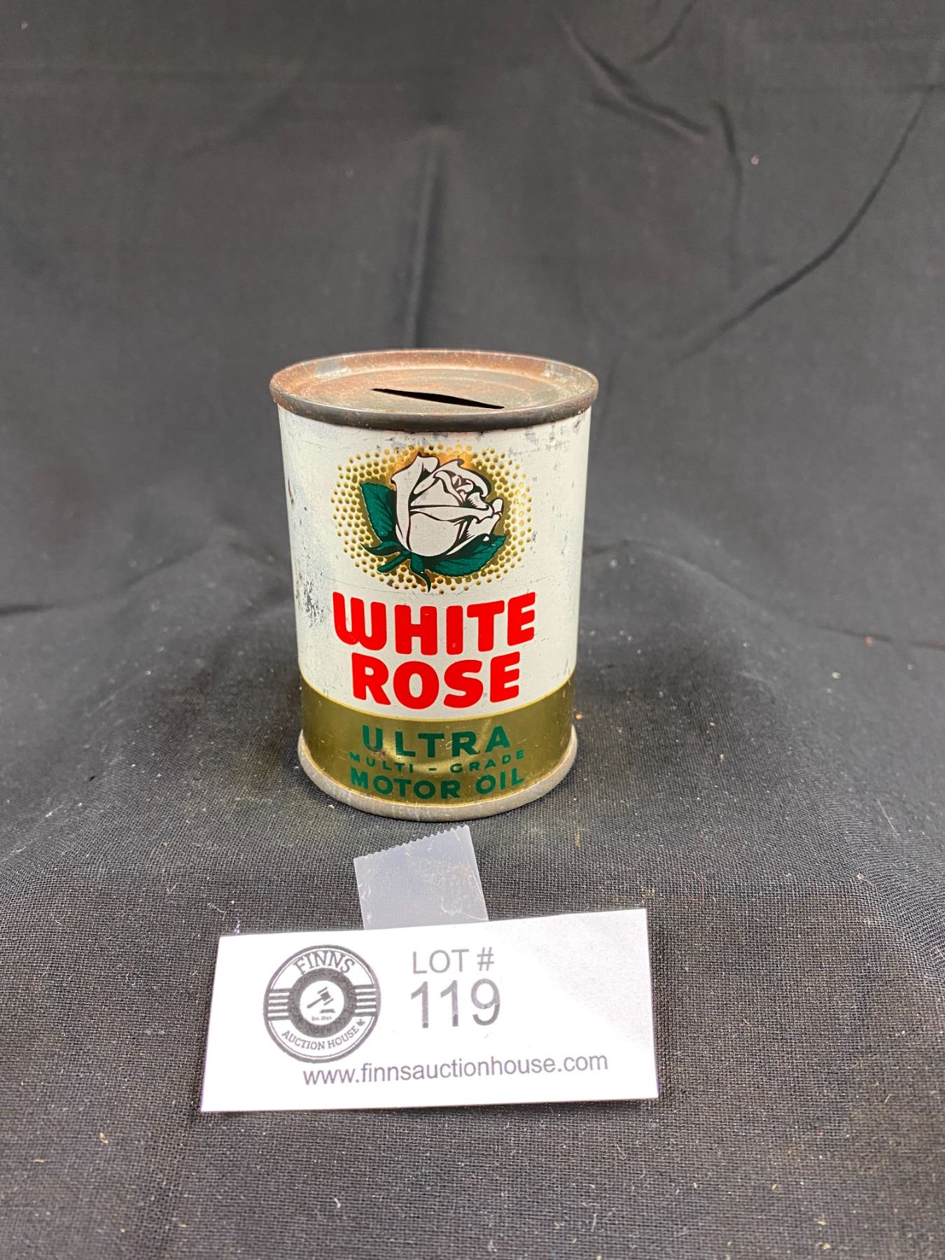 Vintage White Rose Ultra Motor Oil 4oz Tin Coin Bank