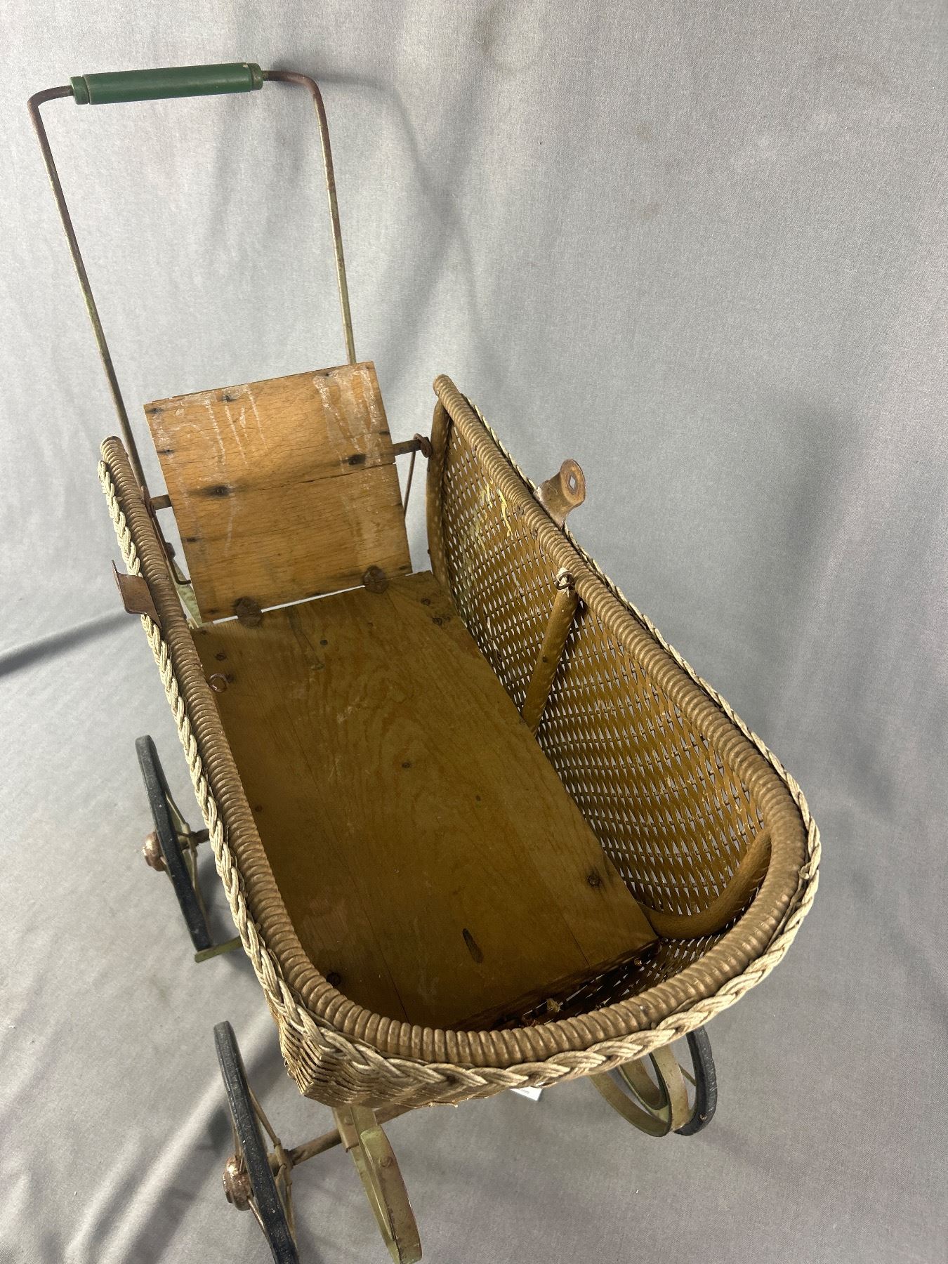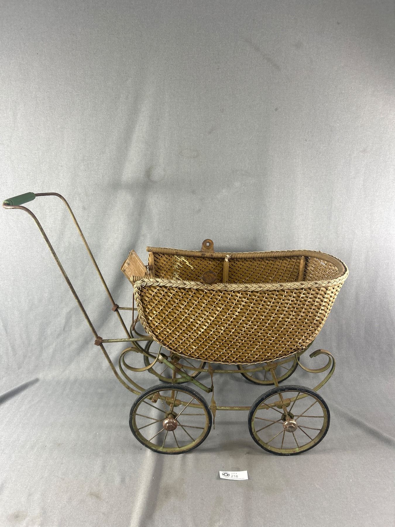 Vintage Wicker Baby Doll Toy Buggy w/ Metal Frame. Approx. 32" x 36" Including Frame