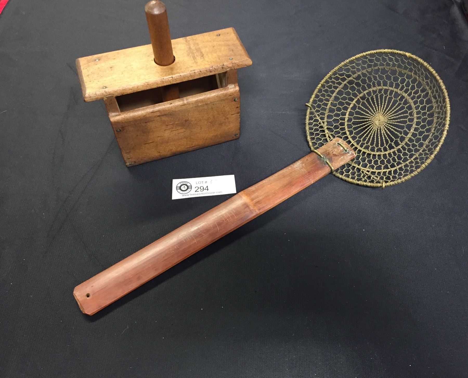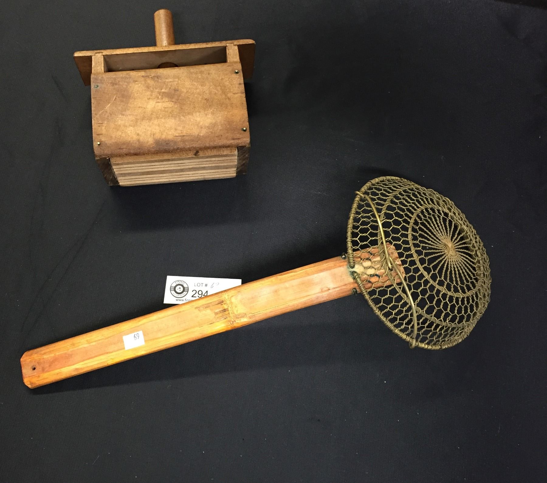 Vintage Wood Butter Press and a Wooden Handle Strainer. Both in Good Shape.