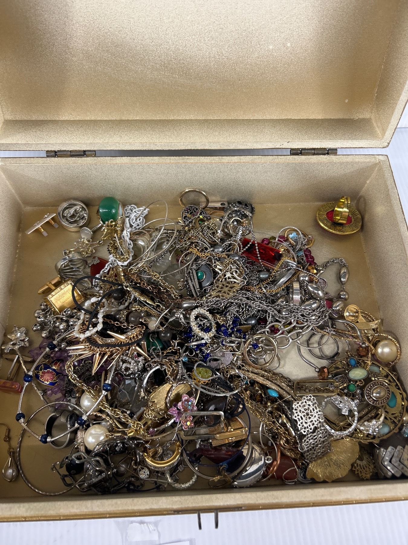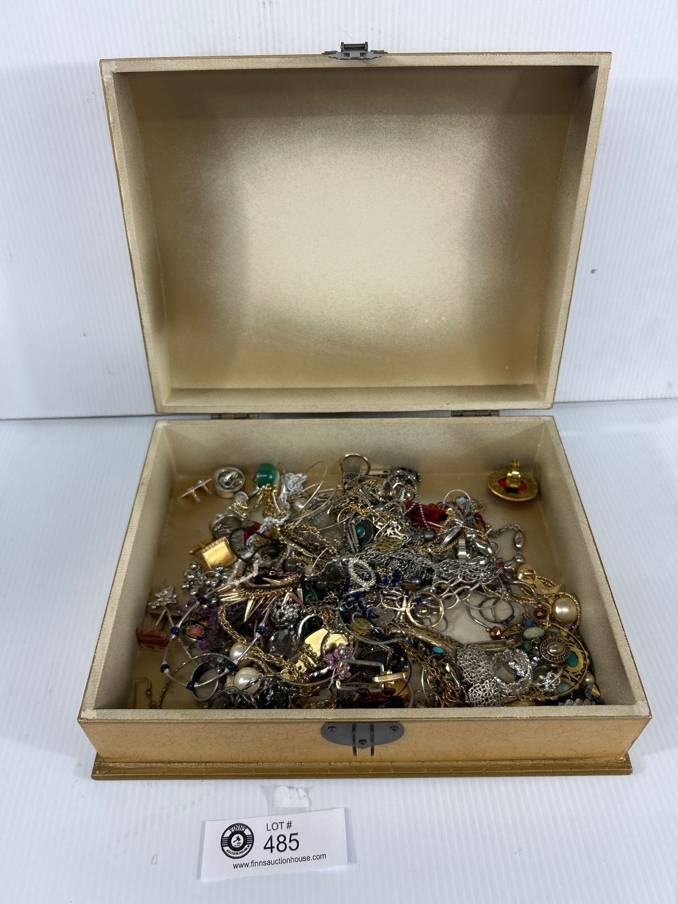 Vintage Wood Case w/ Lot Of Jewelry Contents