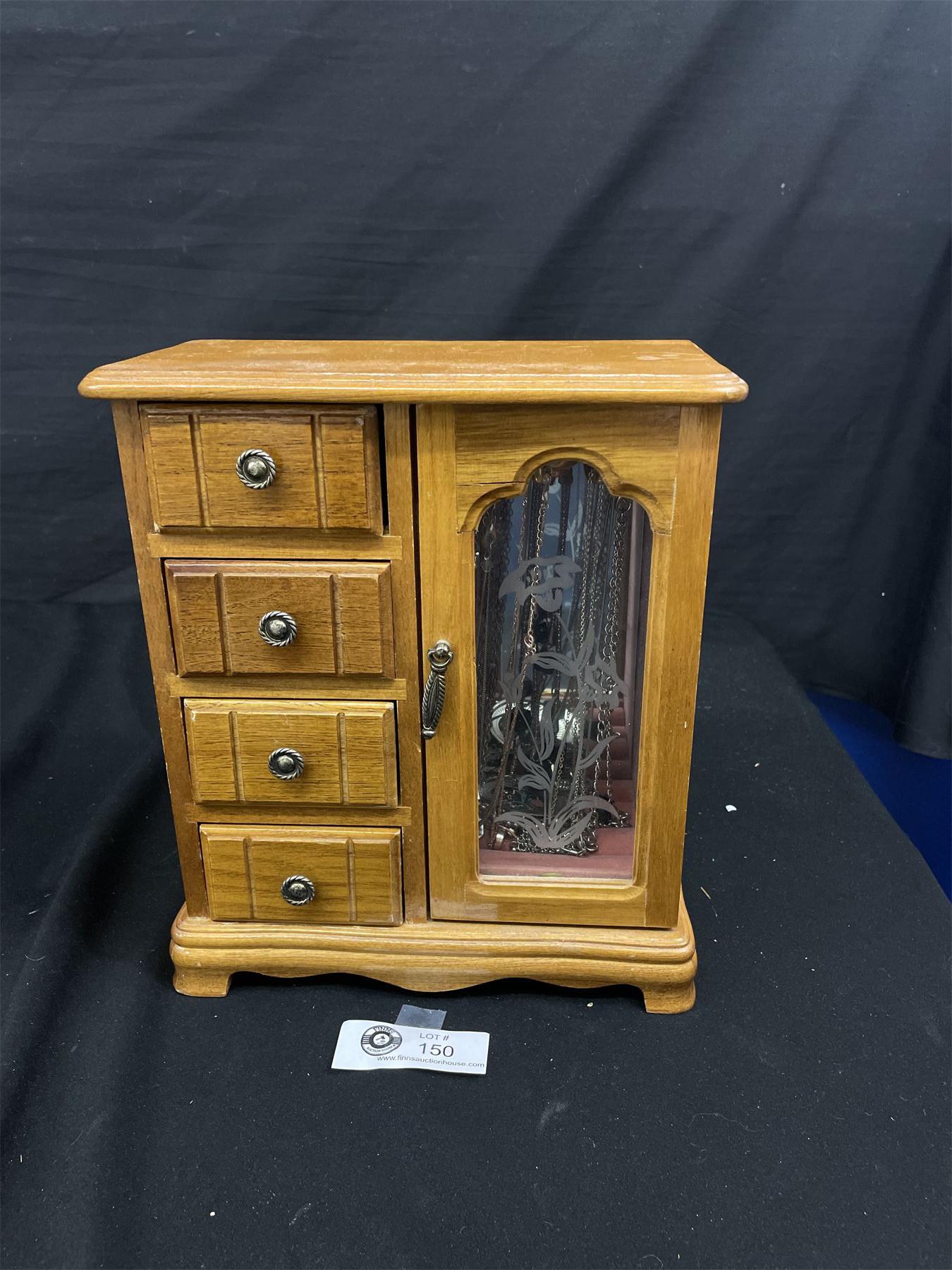 Vintage Wood Jewelry Box with Lots of Jewelry Contents