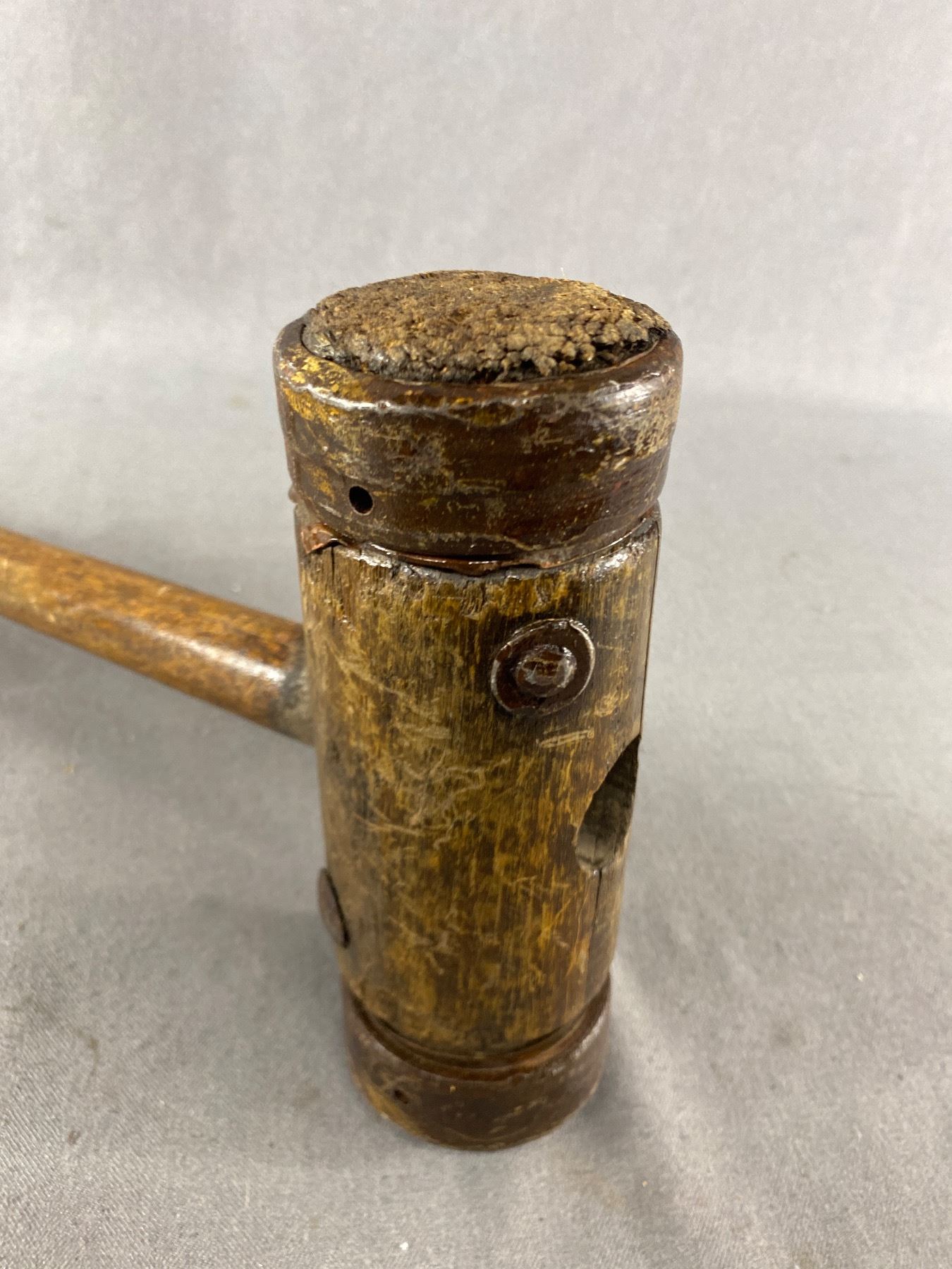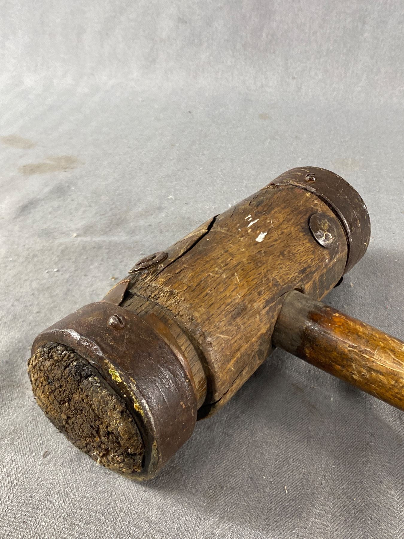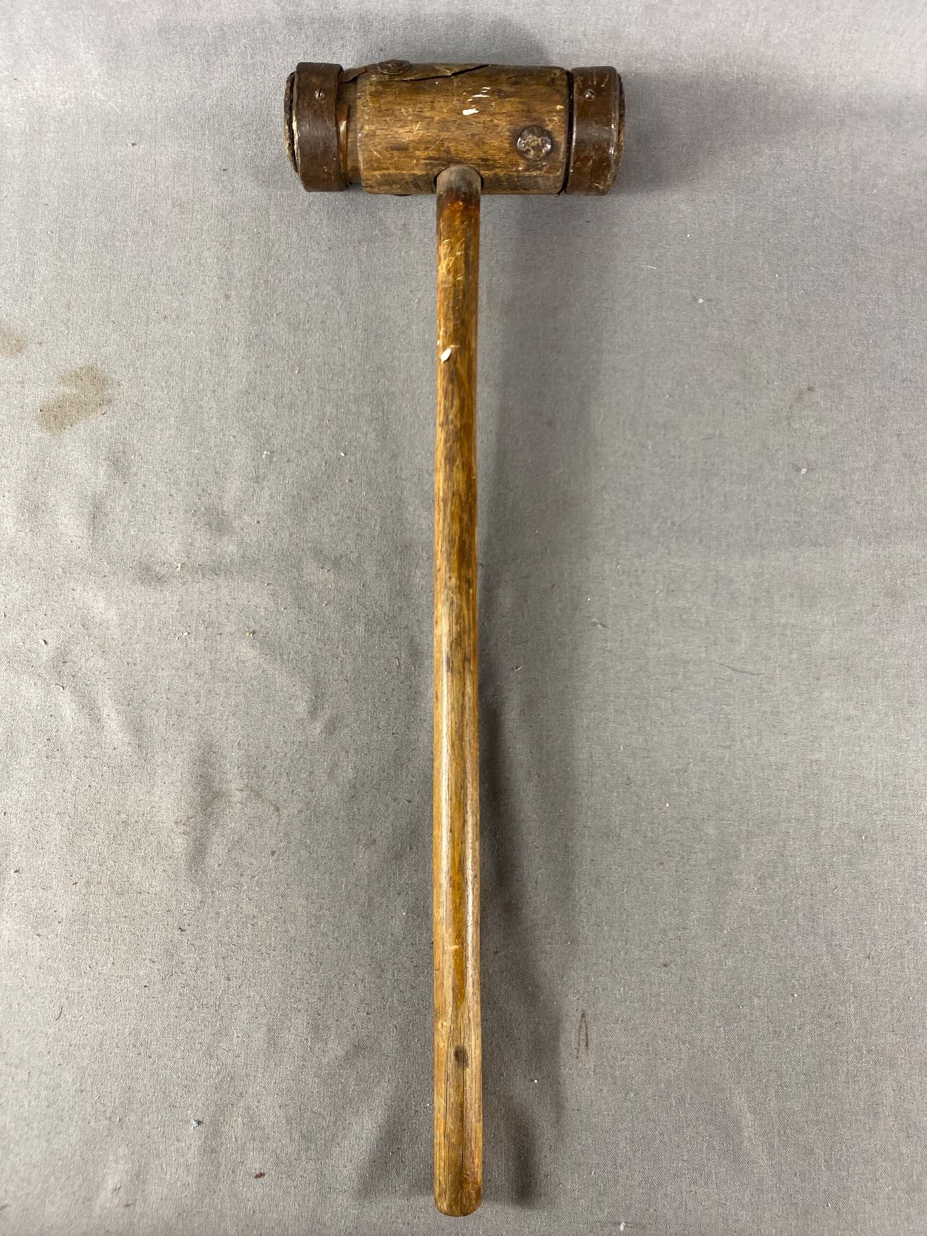 Vintage Wood Mallet w/ Metal Parts. Approx. 26" H