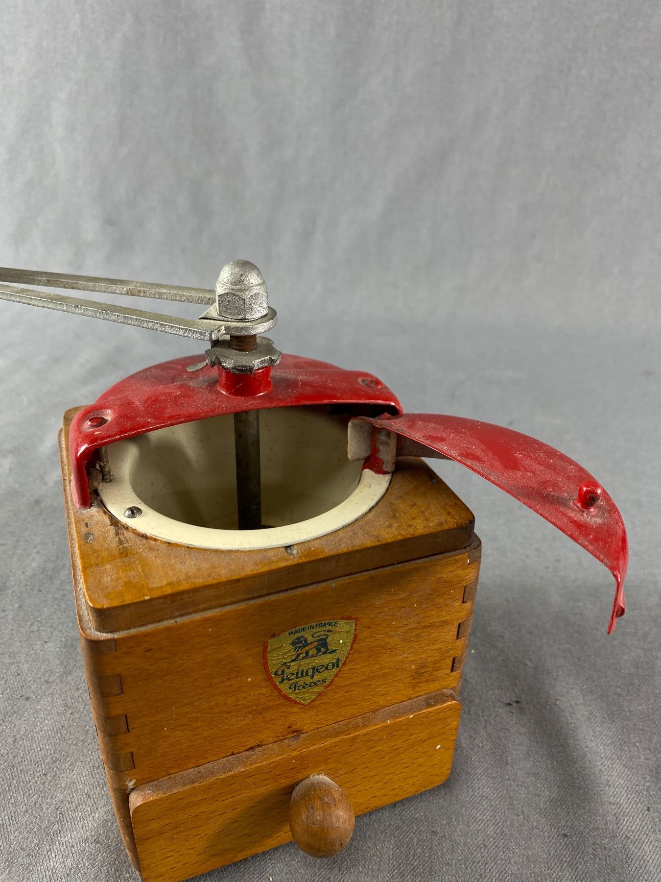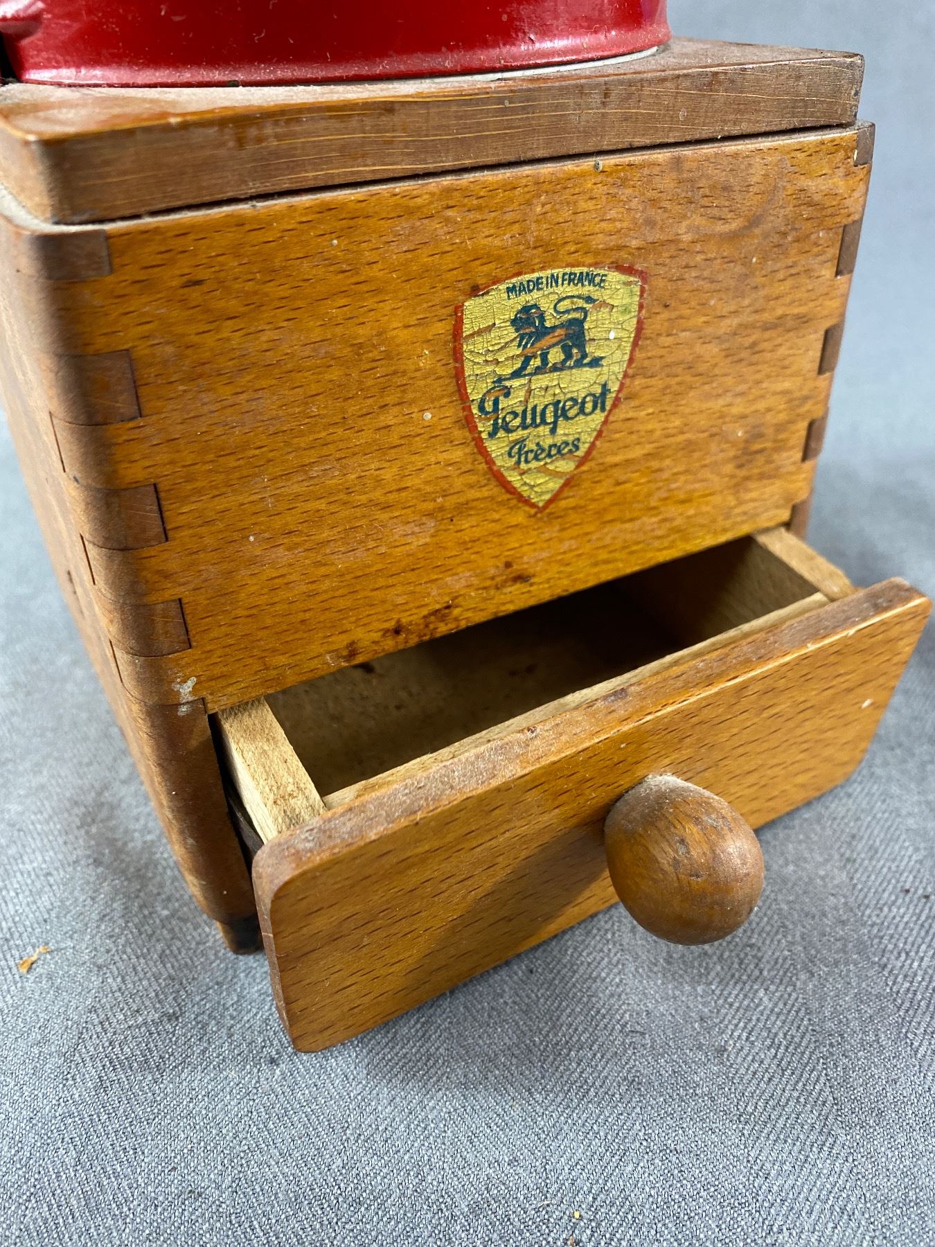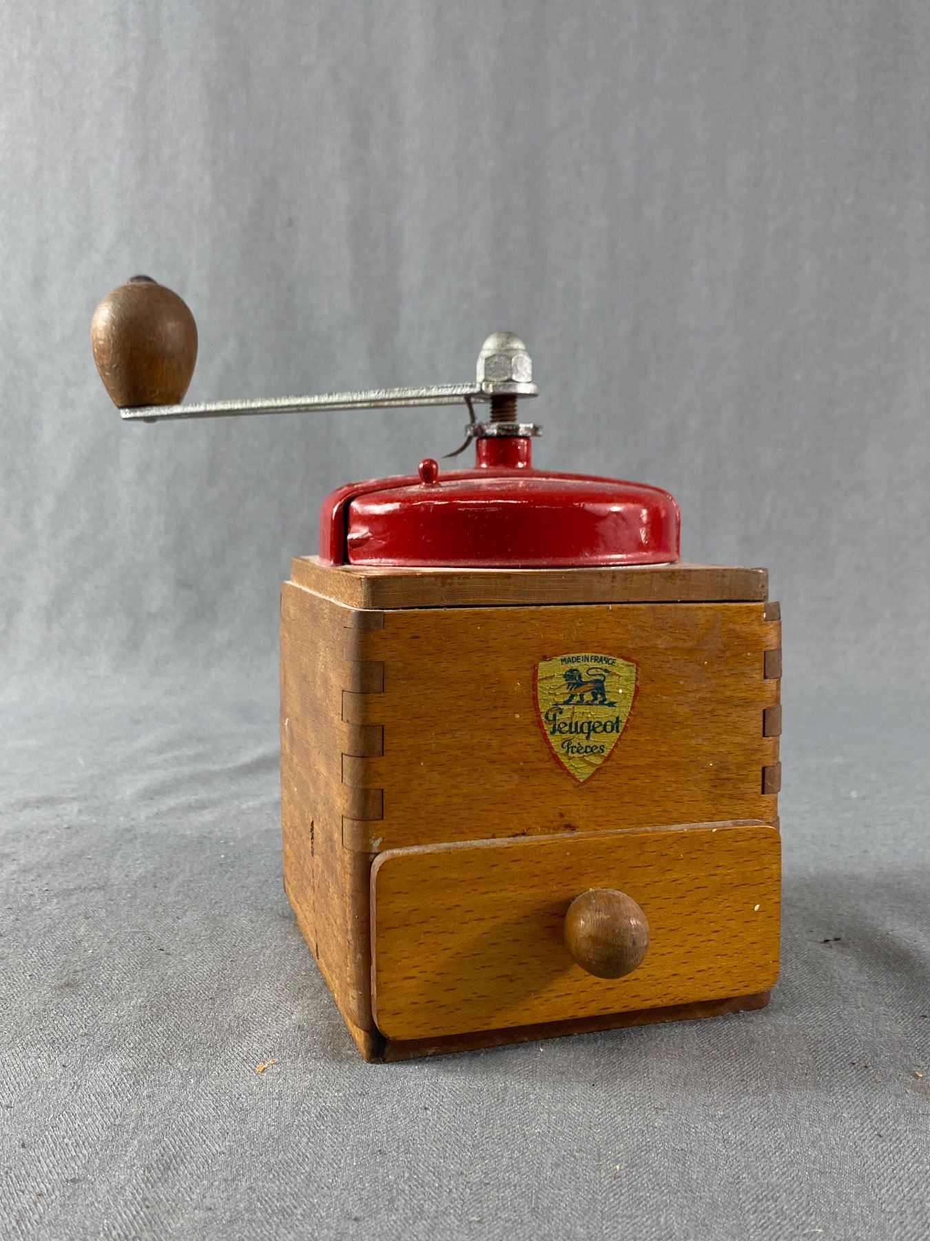 Vintage Wood & Metal Geugeot Coffee Grinder Made In France