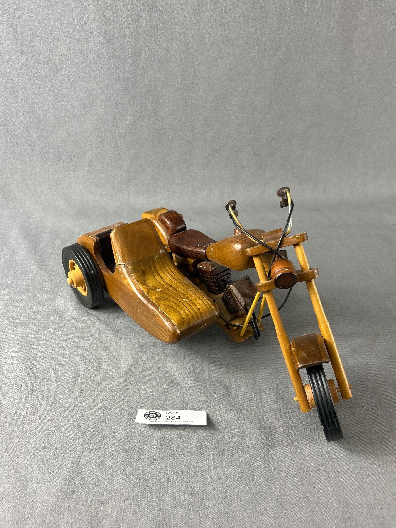 Vintage Wood Motorcycle w/ Side Car Décor. Approx. 16"L