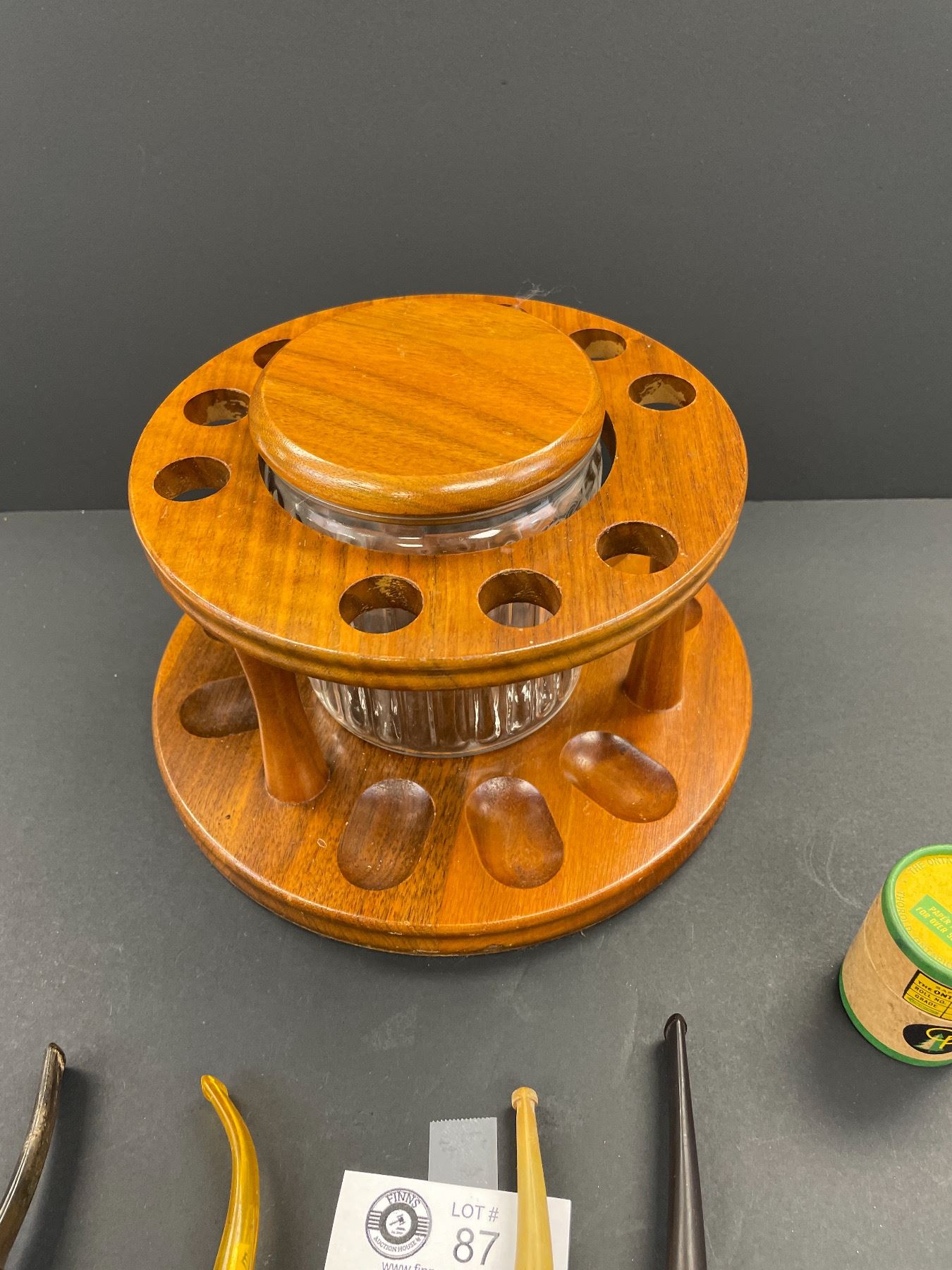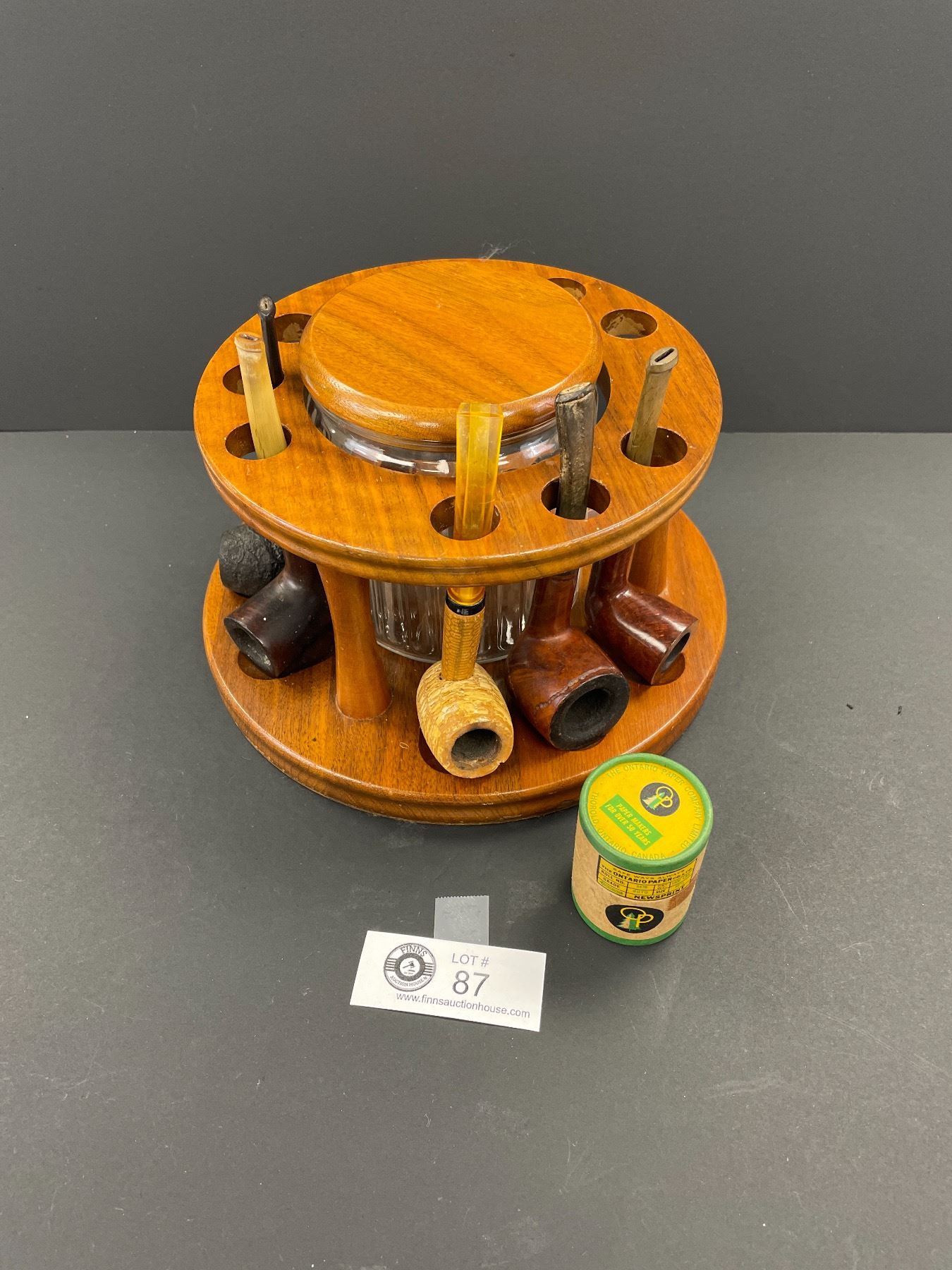Vintage Wood Pipe Stand with Humidor and Pipes