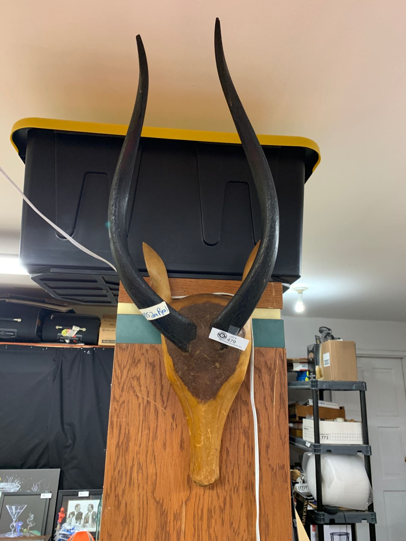Vintage Wooden Antelope Skull with Real Horns. 28" h x 13" w x 10" Thick Very Nicely Made
