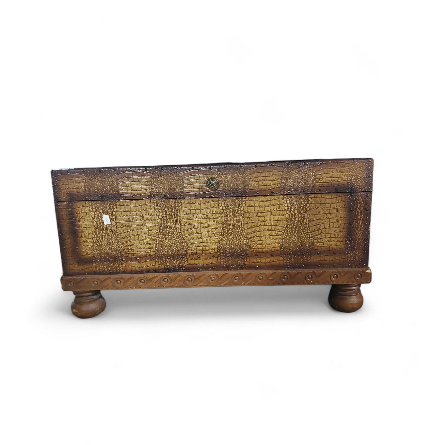 Vintage Wooden Textured Crocodile Pattern Storage Trunk - includes Content