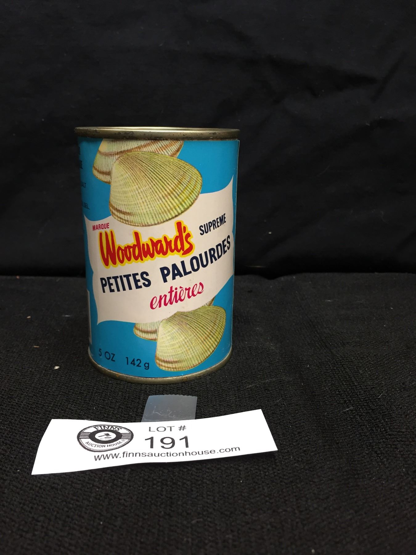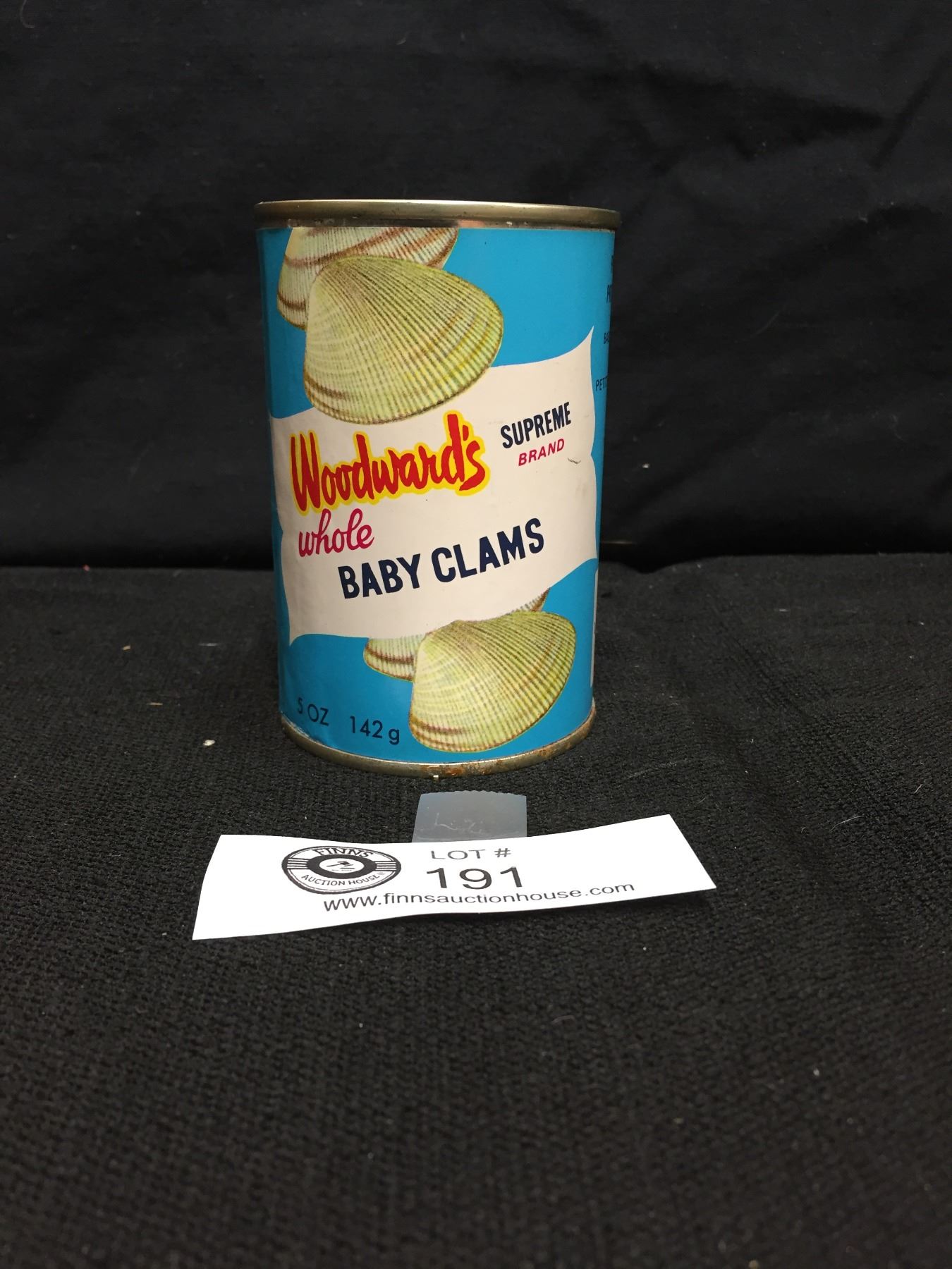 Vintage Woodwards Whole Baby Clams 5 Ounce Tin. Full. Nice Graphics