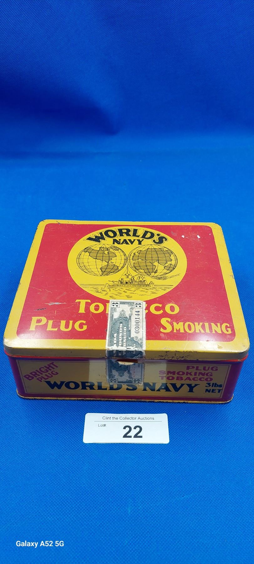 Vintage World's Navy smoking tobacco tin, 7" x 7" x 3"
