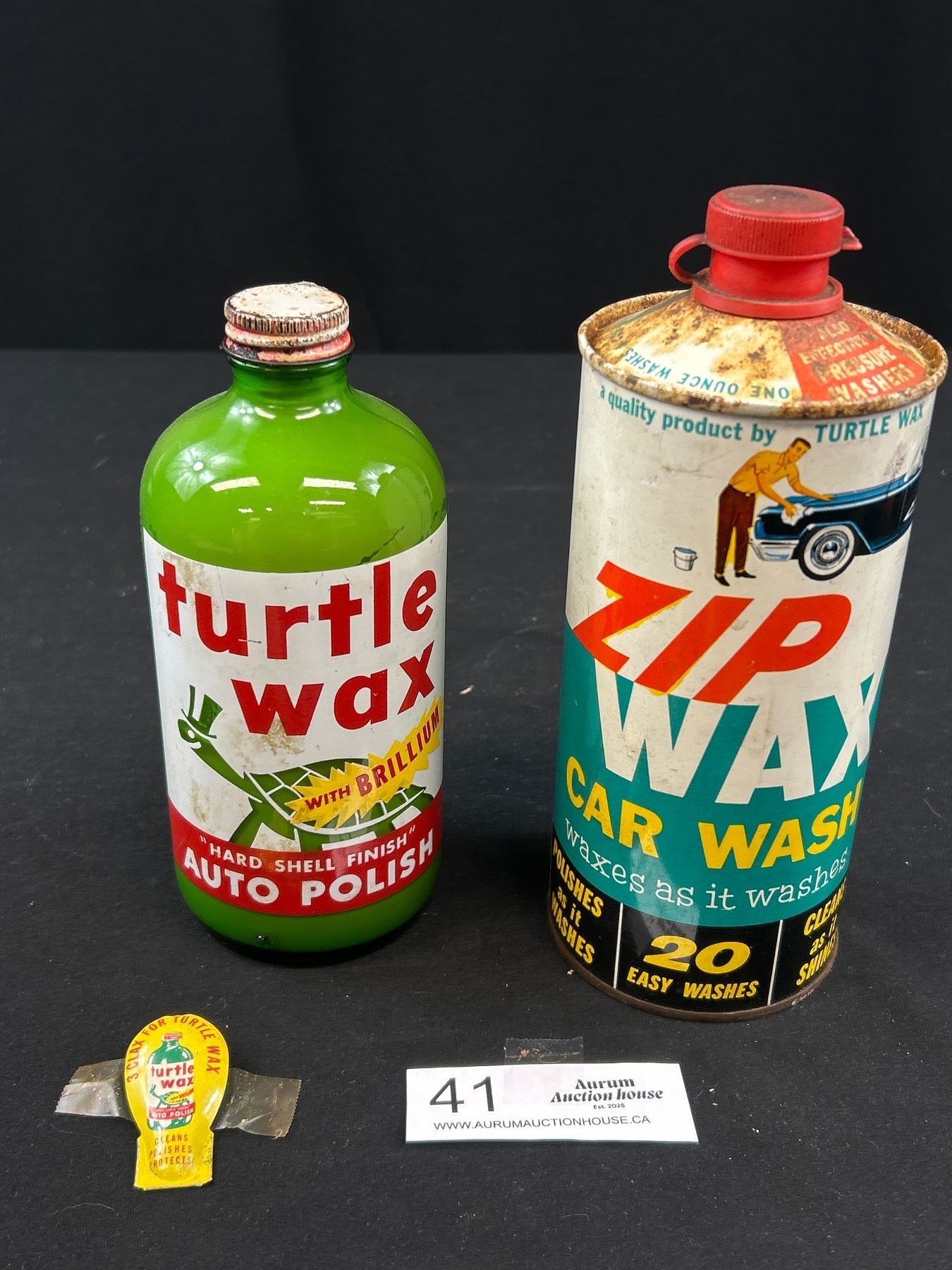 Vintage Zip Wax Car Wash Tin + A Turtle Wax Auto Polish and Turtle Wax Clacker