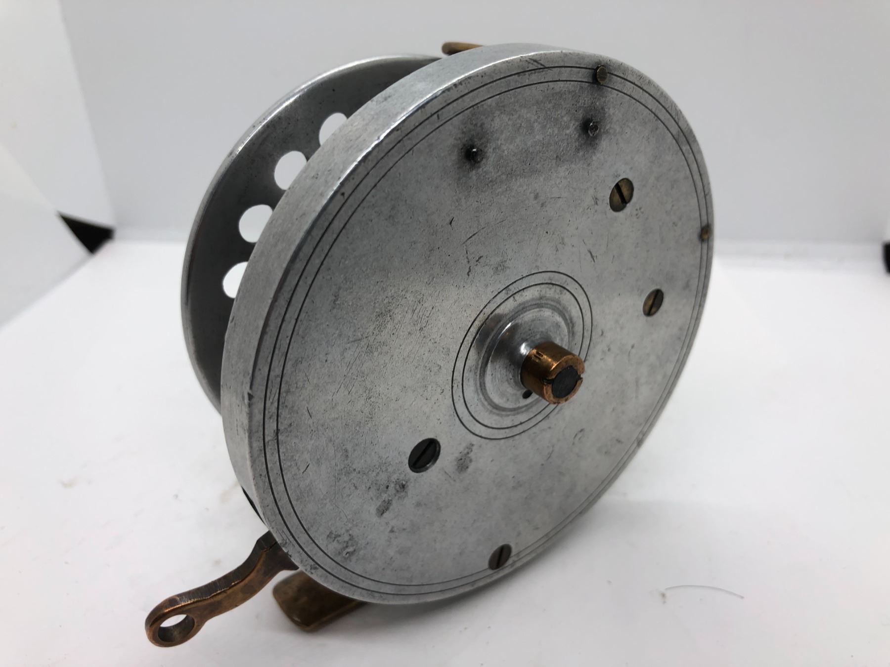 Vintage aluminum crafted w/ brass center-pin salmon fishing reel (no markings)