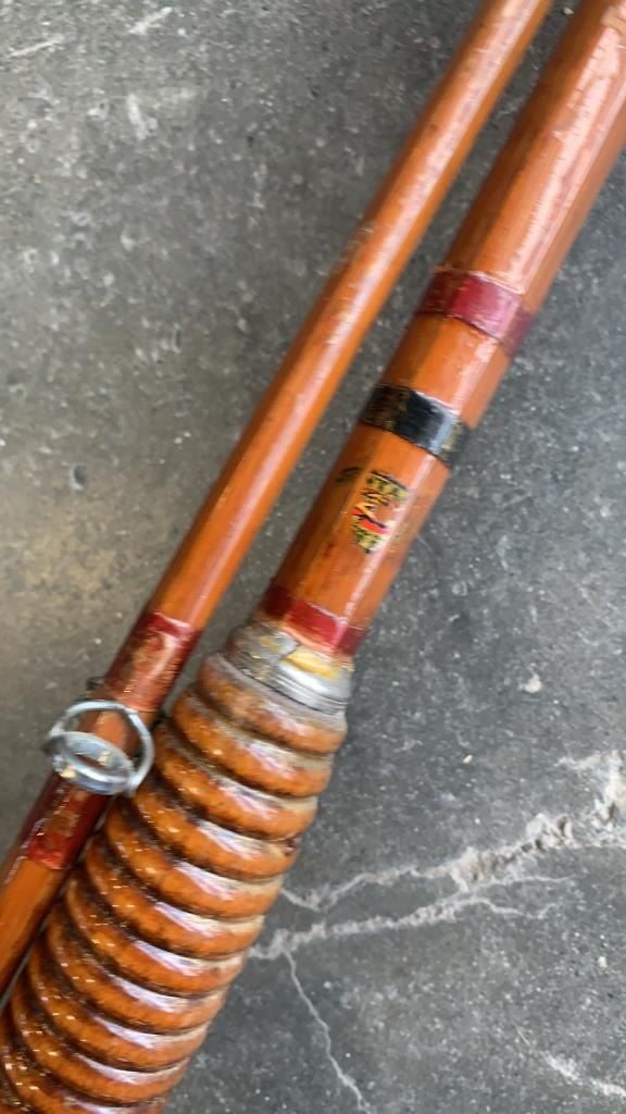 Vintage bamboo 4 piece rod and 2 piece split cane rod with Penn peer reel