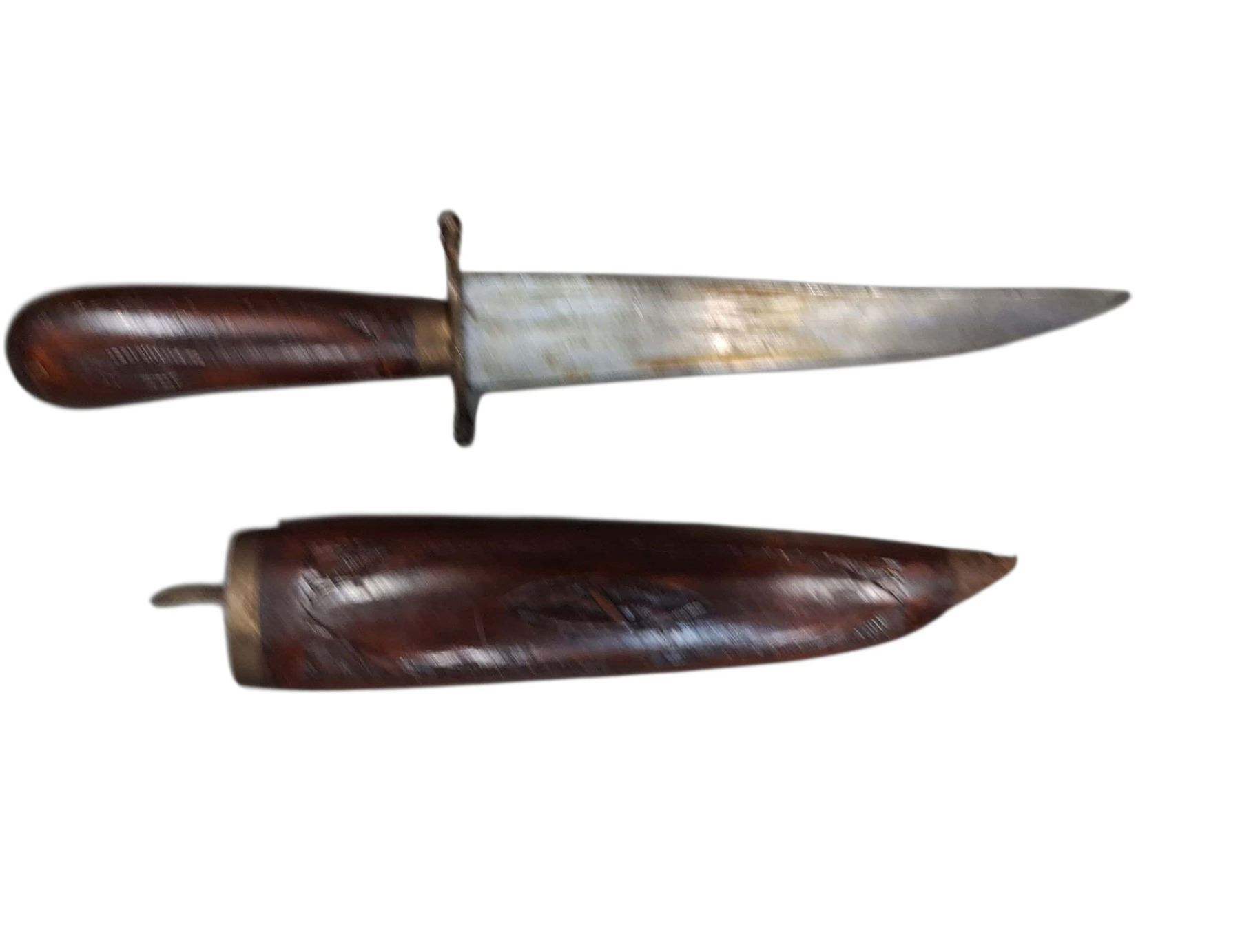 Vintage carving knife with wooden sheath 13"