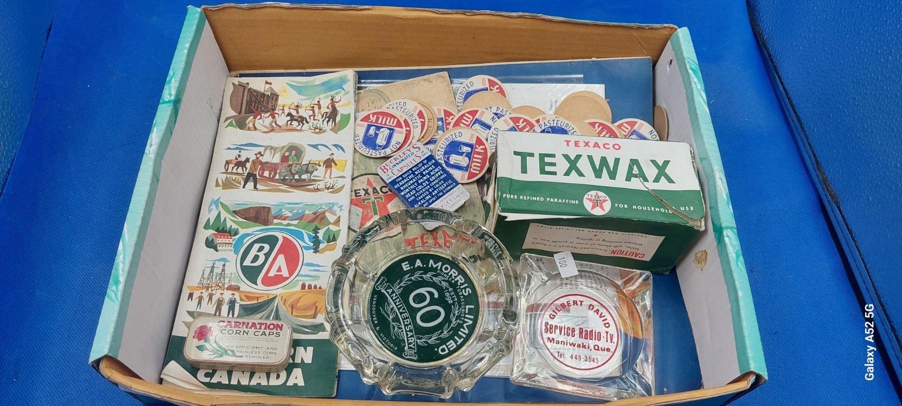 Vintage collectibles Texaco/B-A/Snale tins/pictures etc.