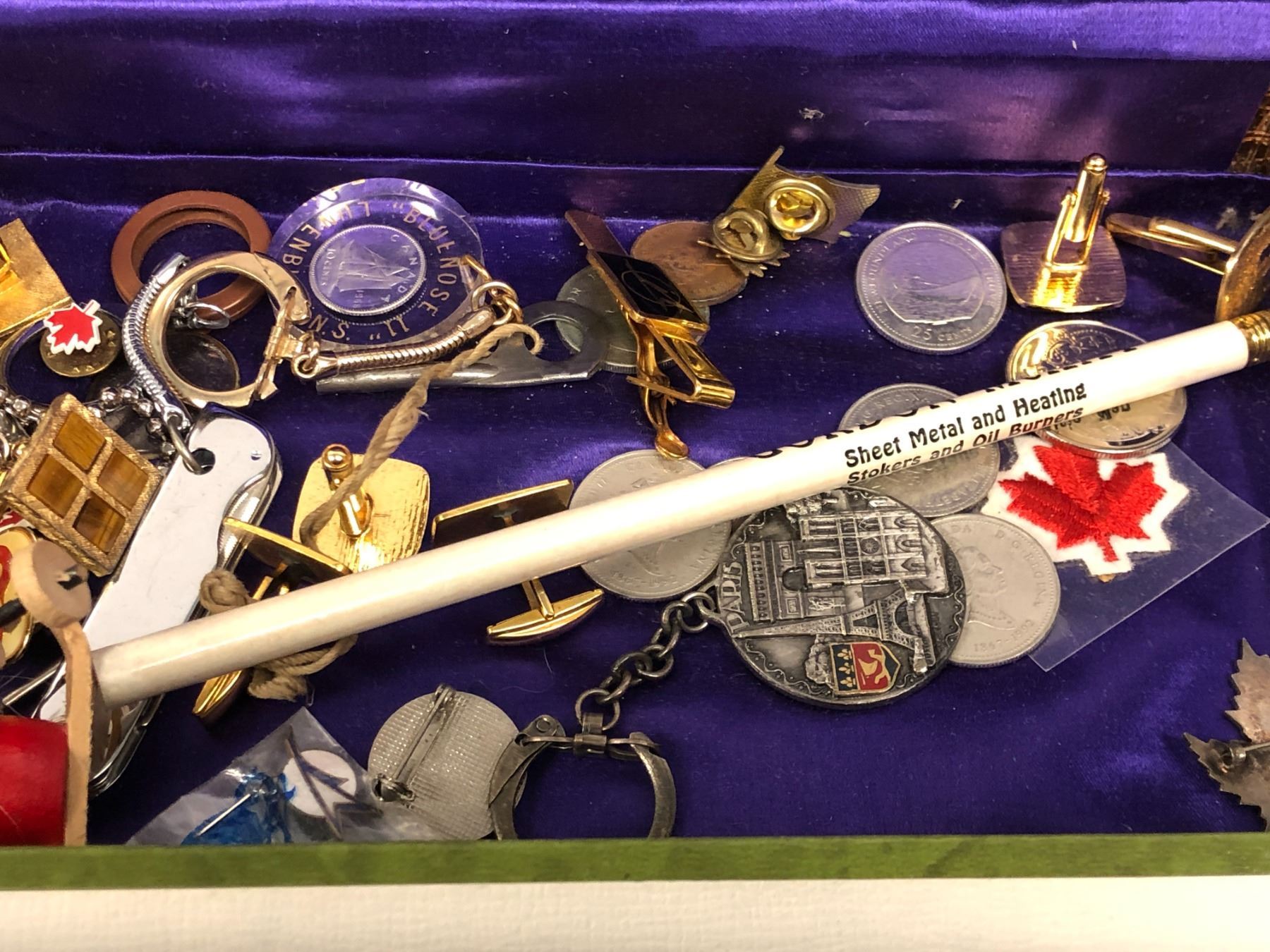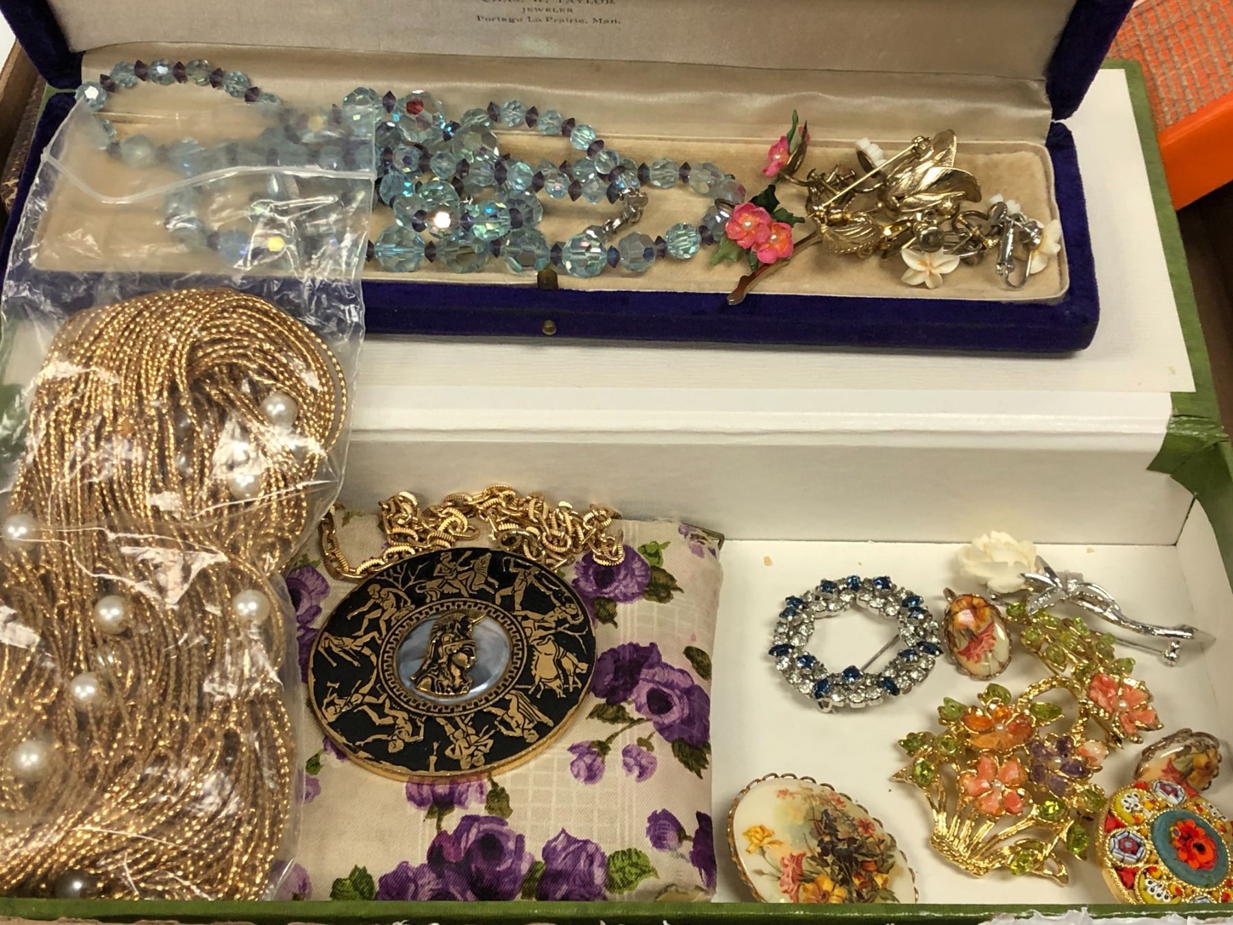 Vintage costume jewelry & misc. items - brooches/ necklaces/ pins/ old coins etc.