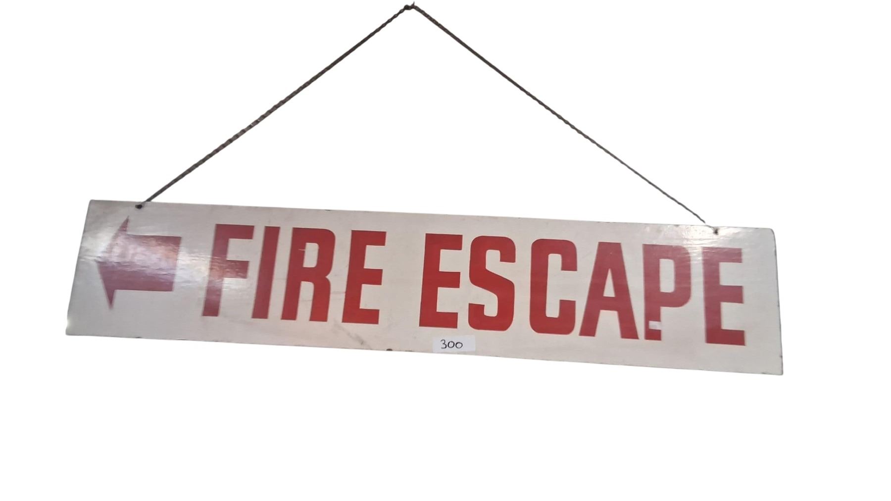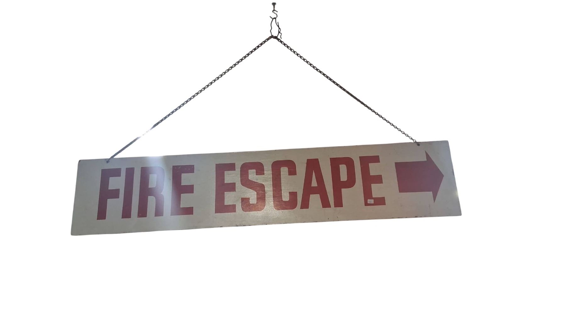 Vintage double sided wooden Fire Escape sign 42"x9"