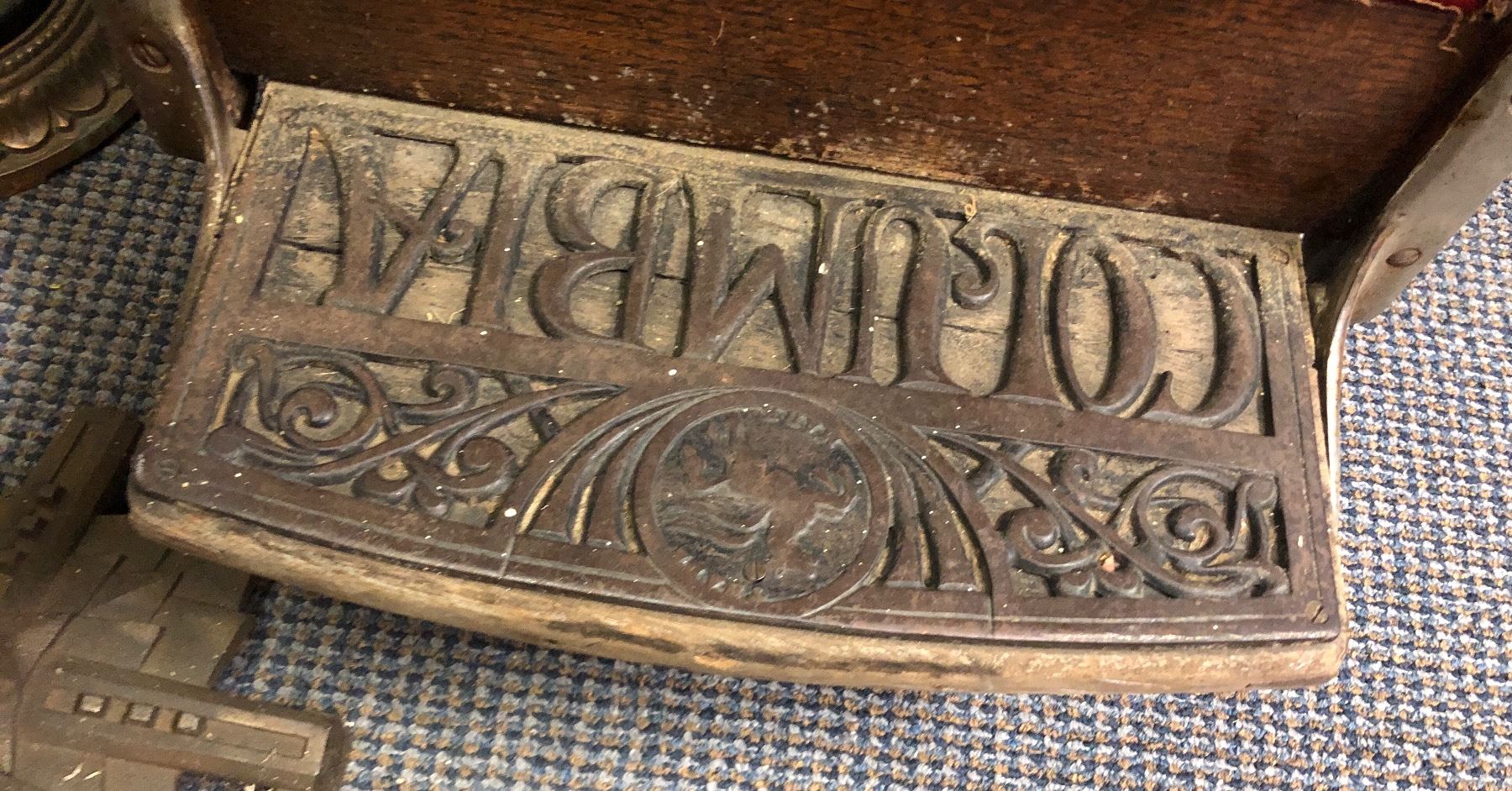 Vintage estate Columbia barbershop chair - approx 25" x 35" x 43 1/2" H