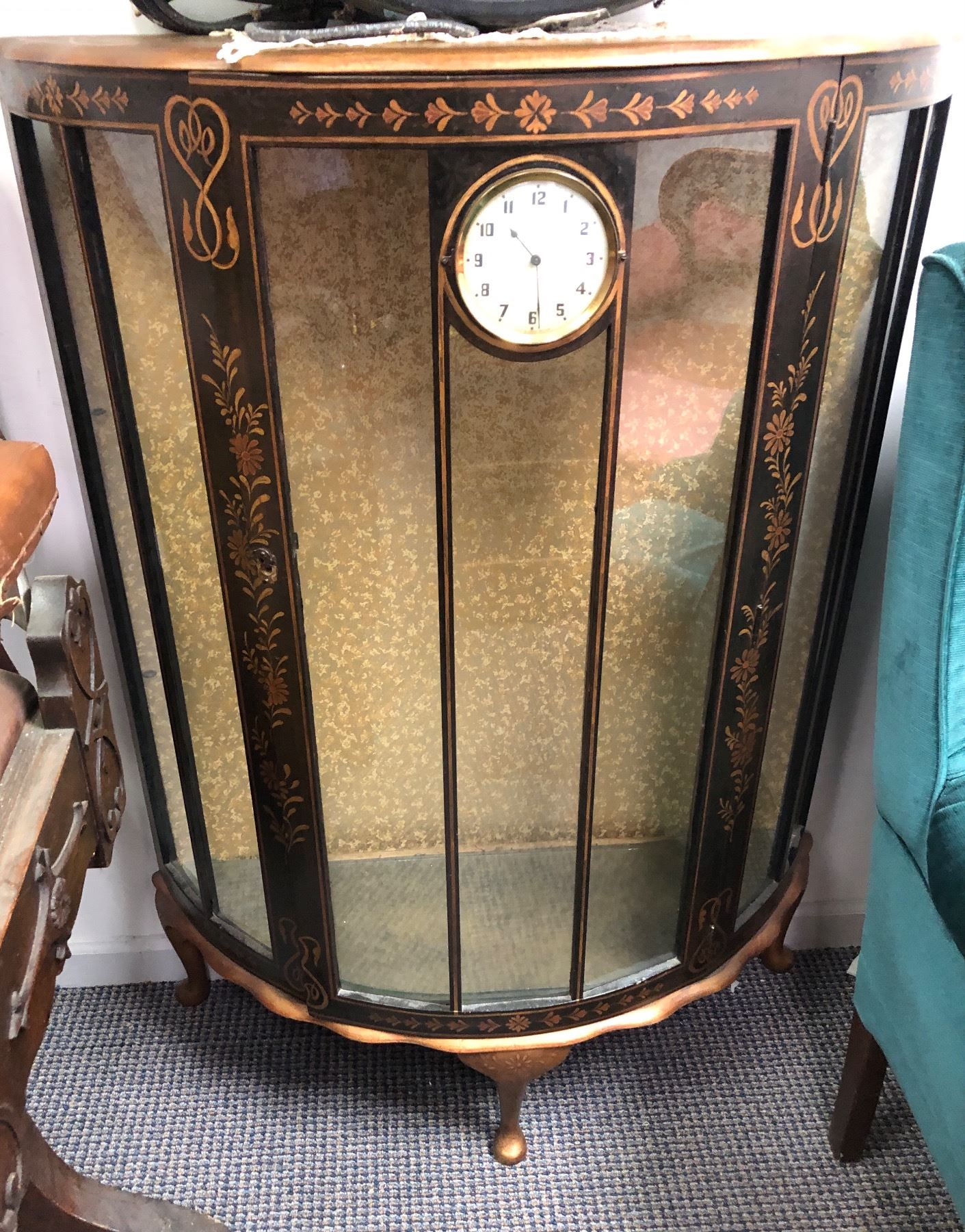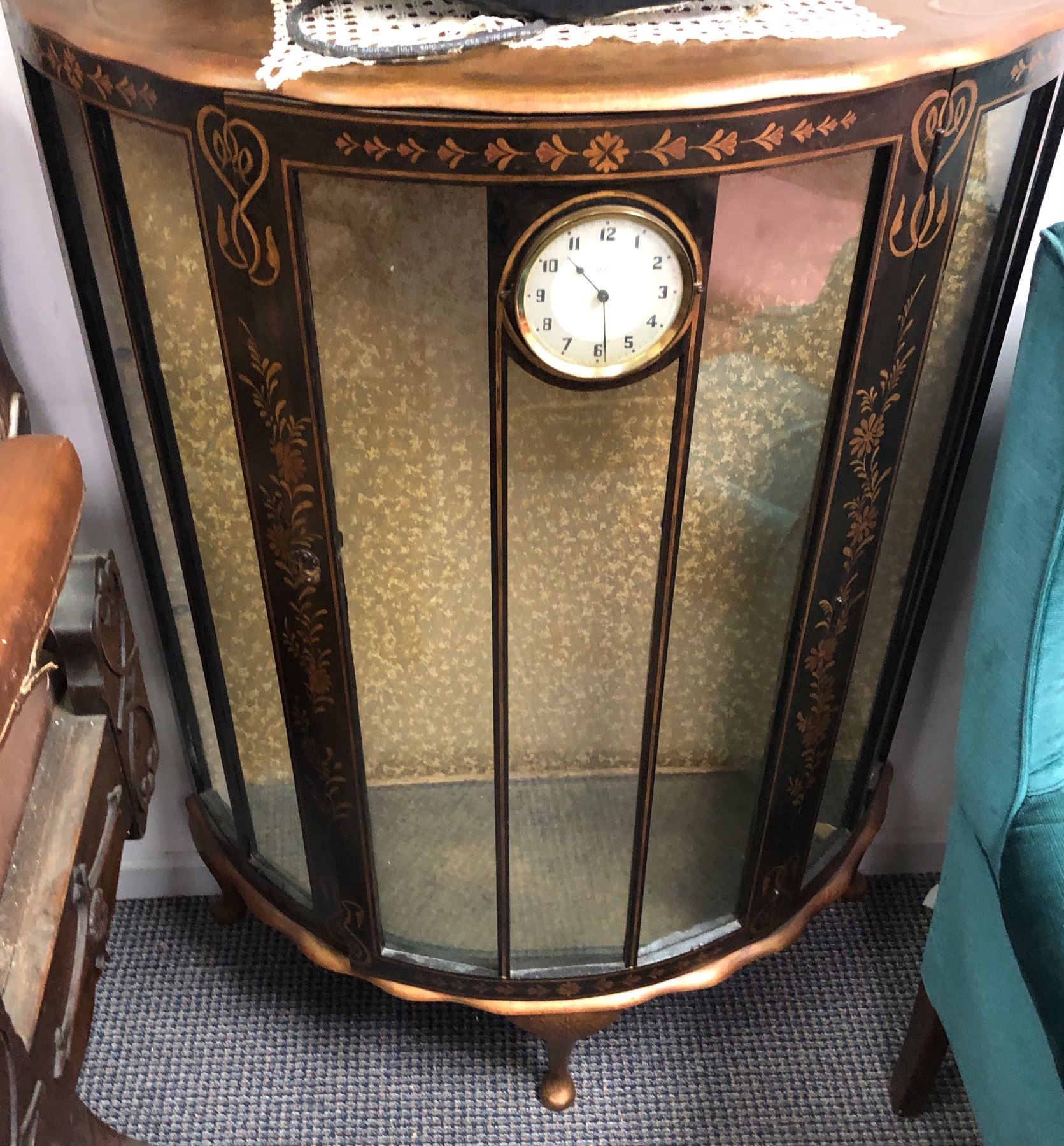 Vintage estate Queen Anne style Demi-Loon cabinet w/ smiths 30 hour clock - approx 33 1/2" W x 12" L x 44 1/2" H