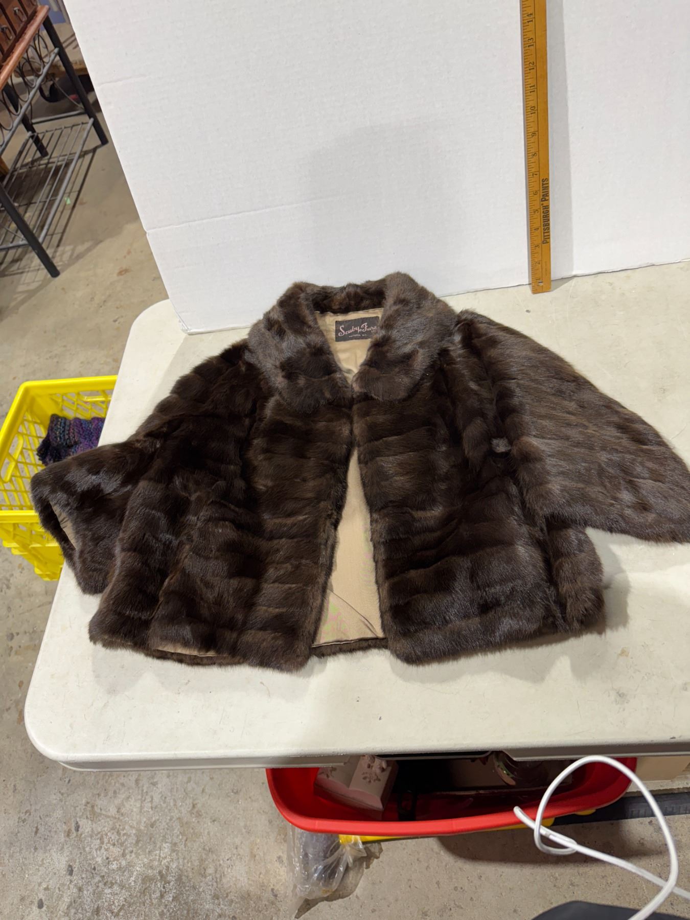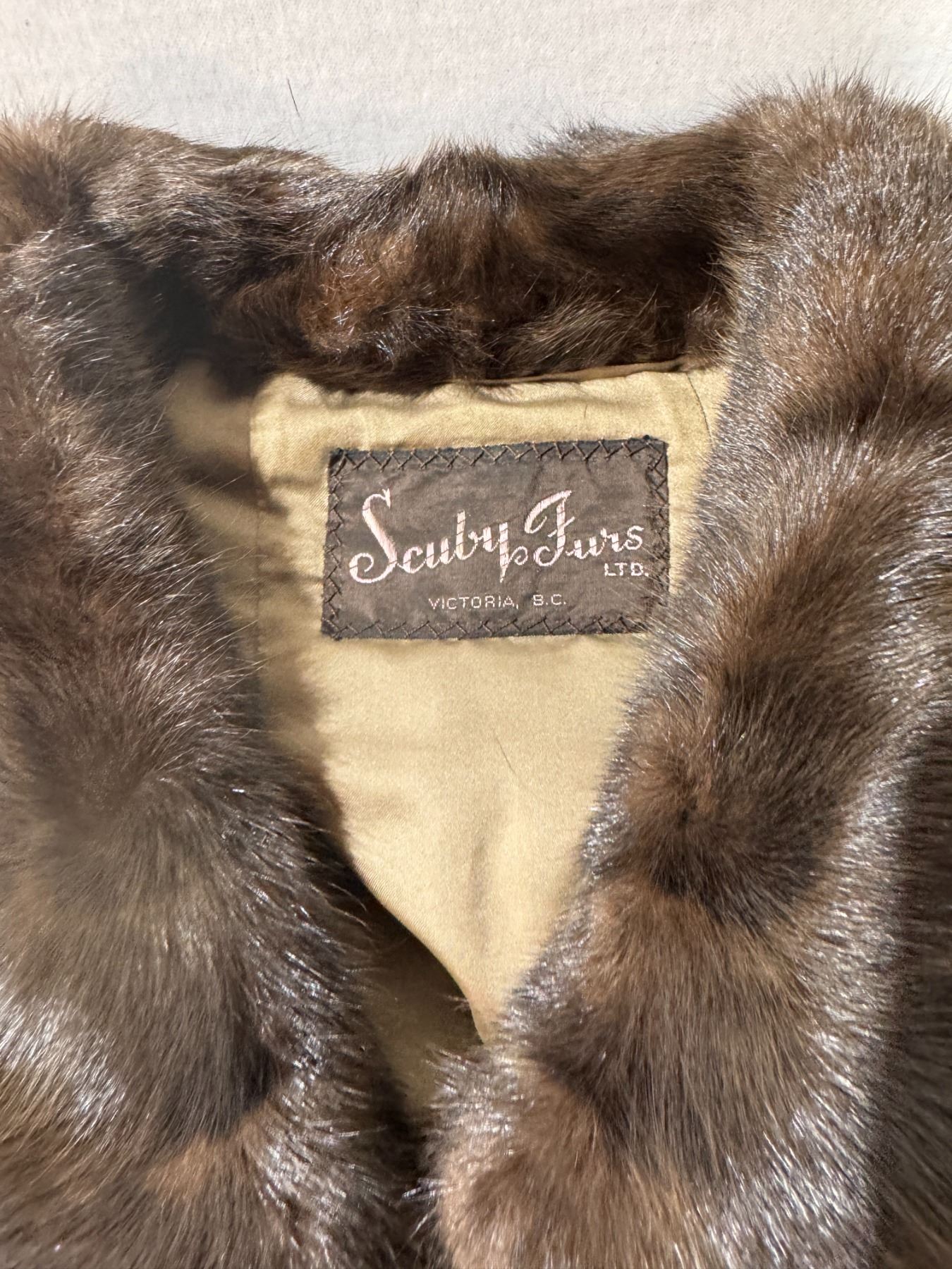 Vintage fur jacket waist, high elbow length sleeve, dark brown, very small SCUBEY furs