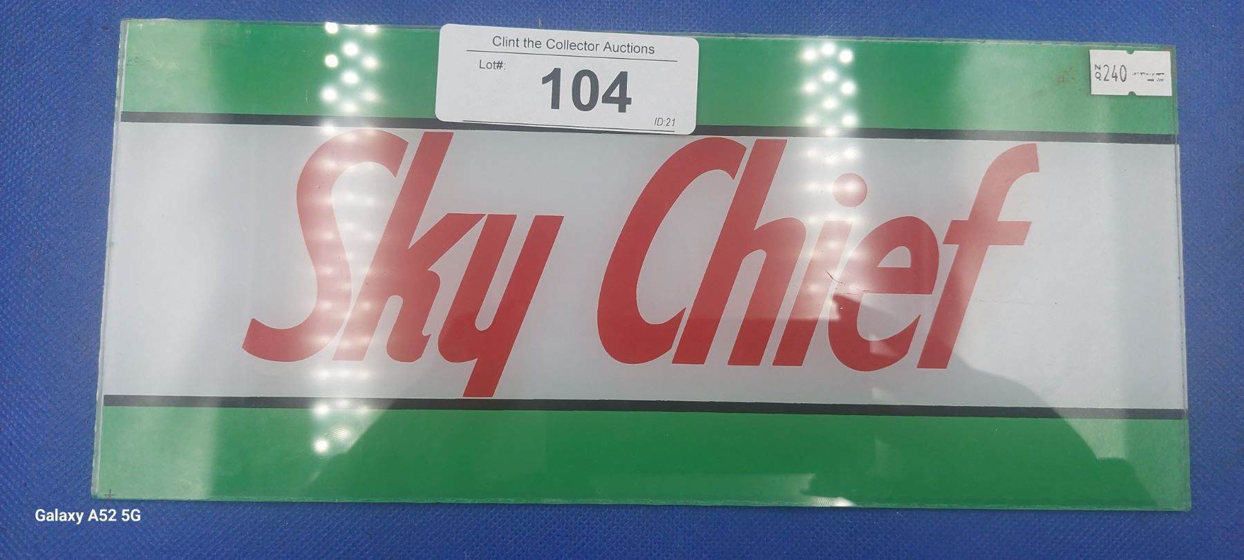 Vintage glass Sky Chief gas pump plaque 10" x 5"