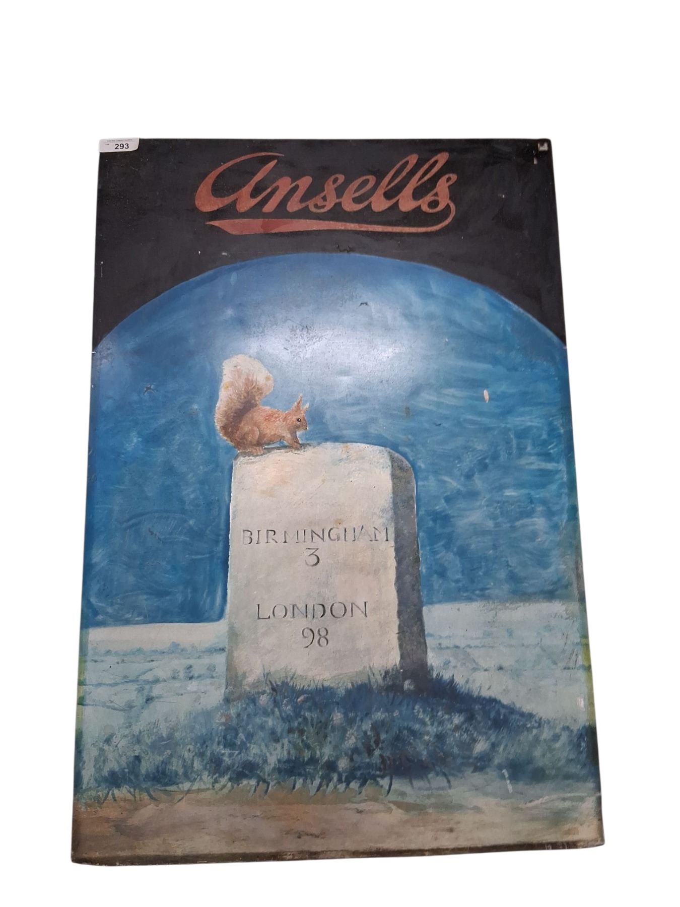 Vintage hand painted on metal pub sign Ansell's 44"x30"