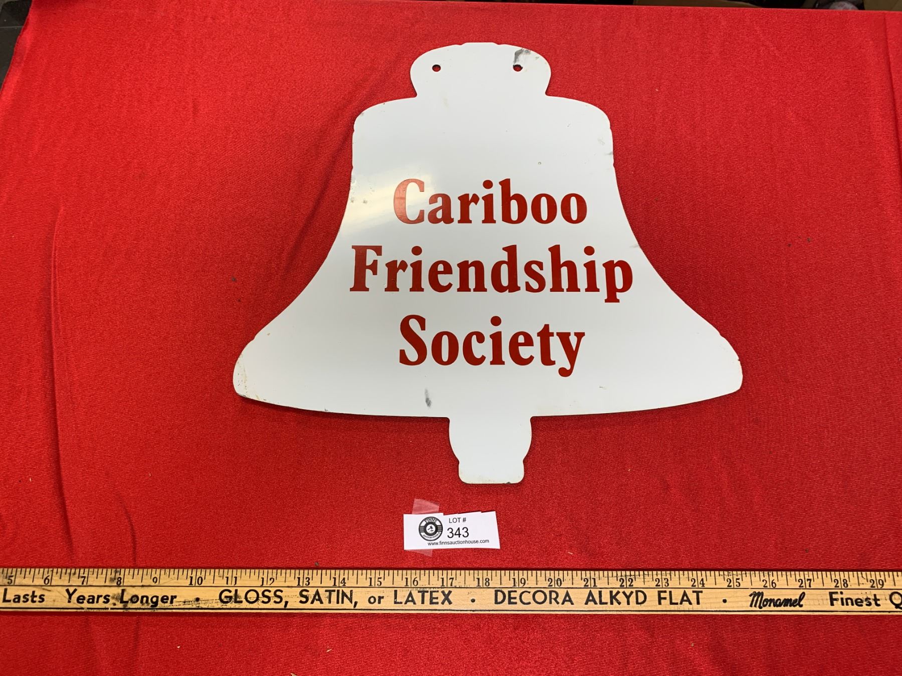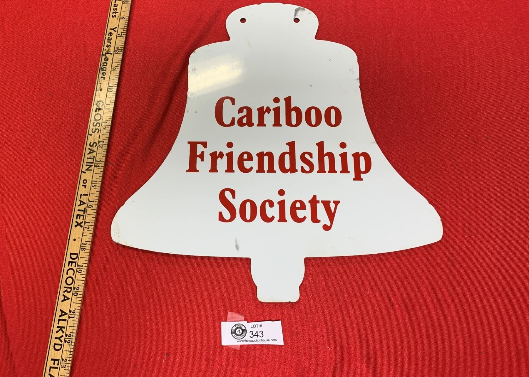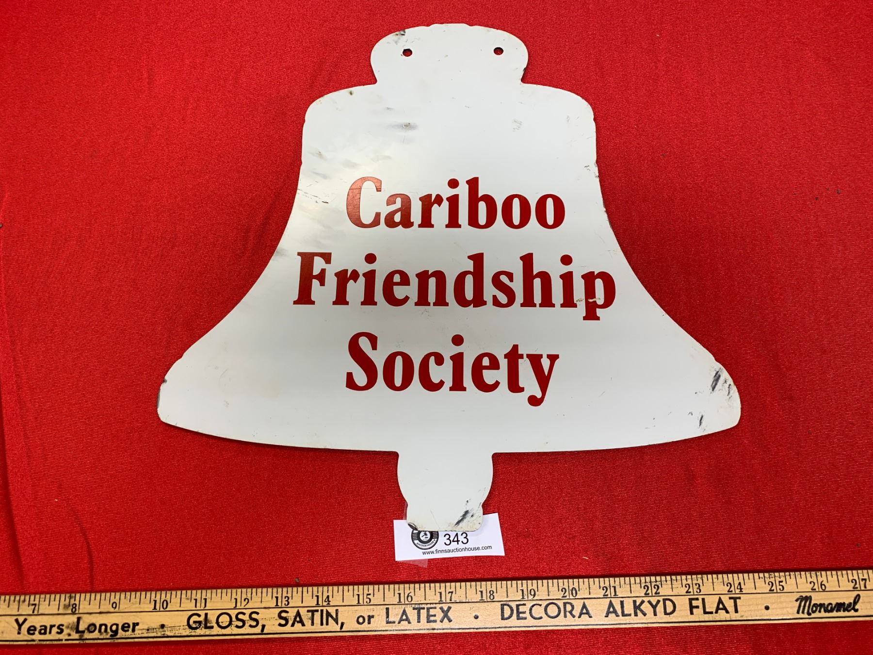 Vintage metal bell shaped sign from Northern BC Caribou Friendship society double sided