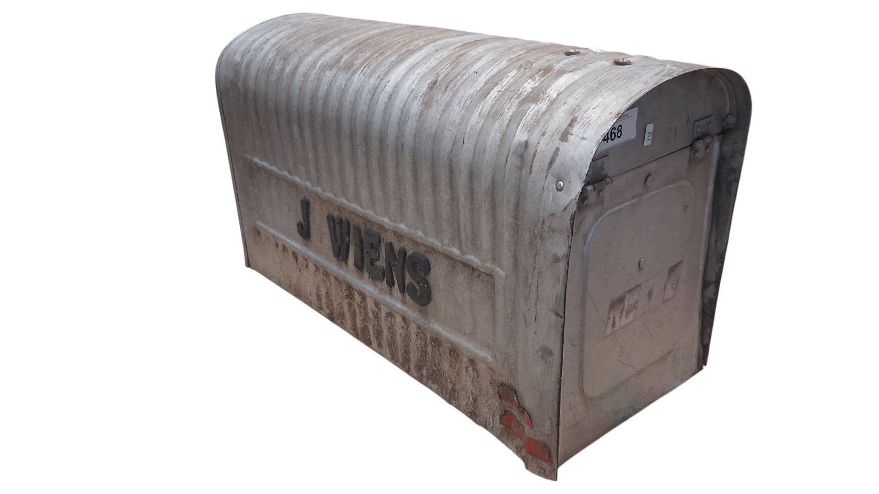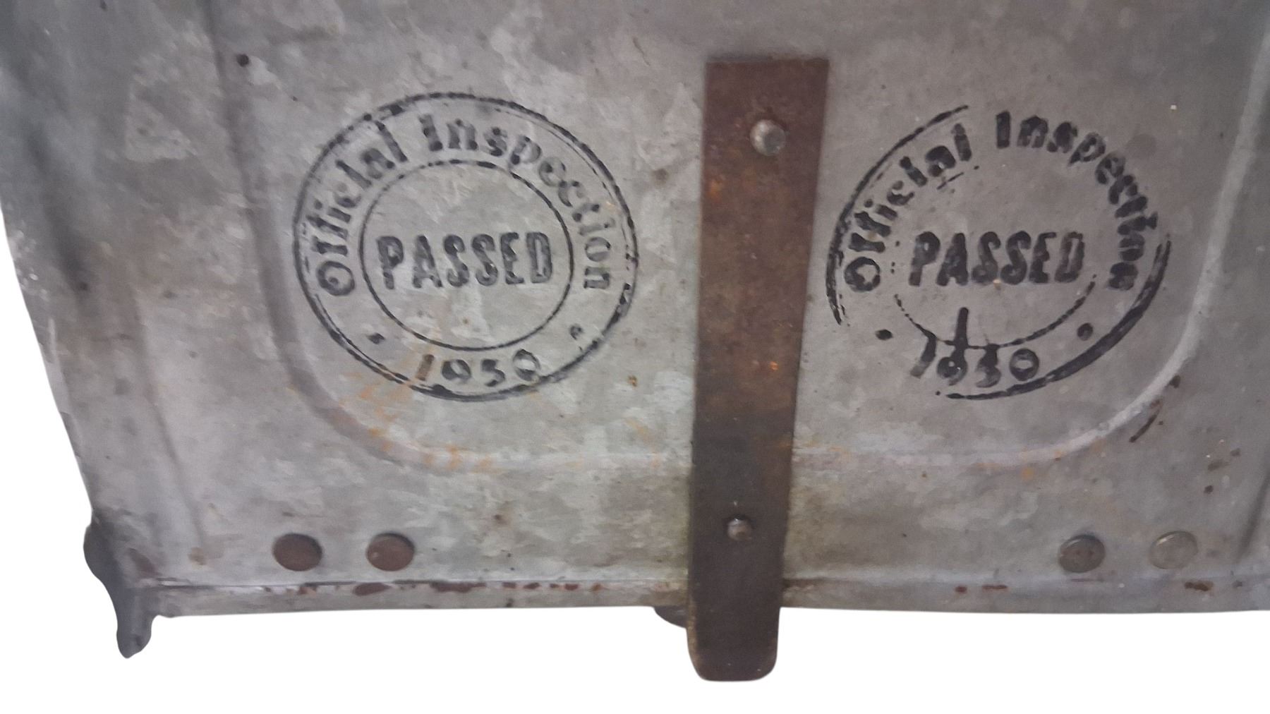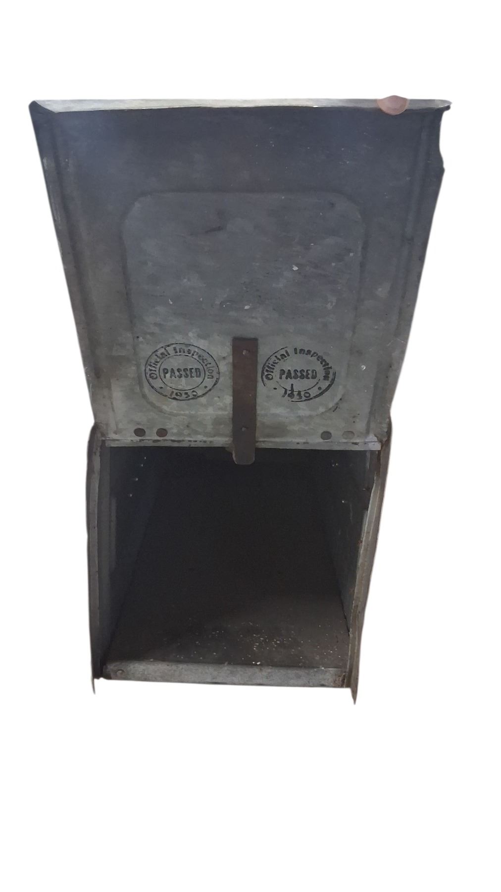 Vintage metal mailbox dated 1951 "Official inspection passed" 23"